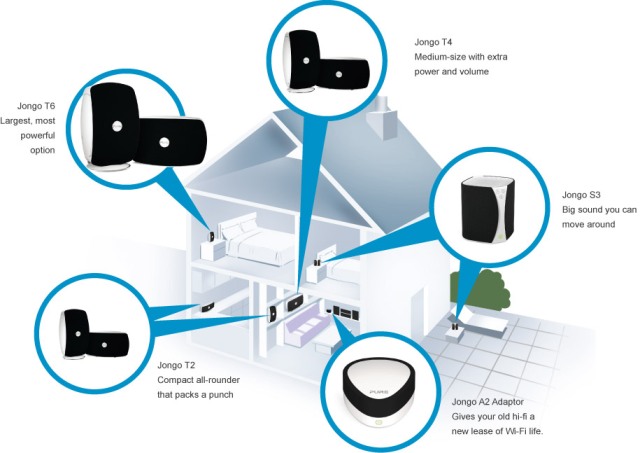 Ở vị trí tiếp theo, Pure cũng đóng góp vào danh sách lựa chọn một series sản phẩm mang tên Jongo. Với thiết kế nhiều màu sắc, khả năng kết nối giữa các loa dễ dàng và công suất phát khá lớn, đa dạng về mẫu mã khiến các sản phẩm Jongo có thể dễ dàng được đặt ở mọi nơi trong căn nhà của bạn. Bạn có thể chỉnh âm lượng của một hoặc nhiều loa cùng một lúc. Với khả năng phát nhạc qua Wifi và Bluetooth từ các thiết bị thông minh,cho chất lượng lên tới 192Kbps. Nếu bạn muốn truyền tải các bài nhạc chất lượng cao thì Pure có một bộ Adapter Hi-Fi để giúp bạn điều đó. Series này có 5 mẫu là Jongo T6, T4, T2 đặt trong nhà và S3 đặt ngoài trời, Bộ thu phát A2.