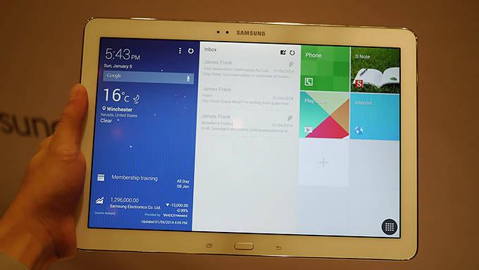 Bên cạnh smartphone, Samsung cũng đang không ngừng đưa vào thị trường các dòng máy tính bảng khác nhau và đầy tính cạnh tranh, như: Galaxy Tab S, Note PRO và Tab PRO. Những sản phẩm này đều nằm trong phân khúc máy tính bảng cao cấp năm 2014. Galaxy Note PRO 12.2 đi kèm bút S-Pen, trong khi Tab PRO 12.2 có thiết kế mạnh mẽ còn Tab S 10.5 lại mỏng nhẹ, tinh tế.