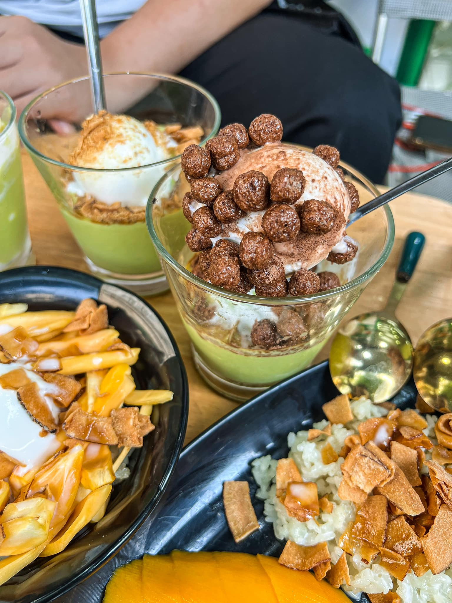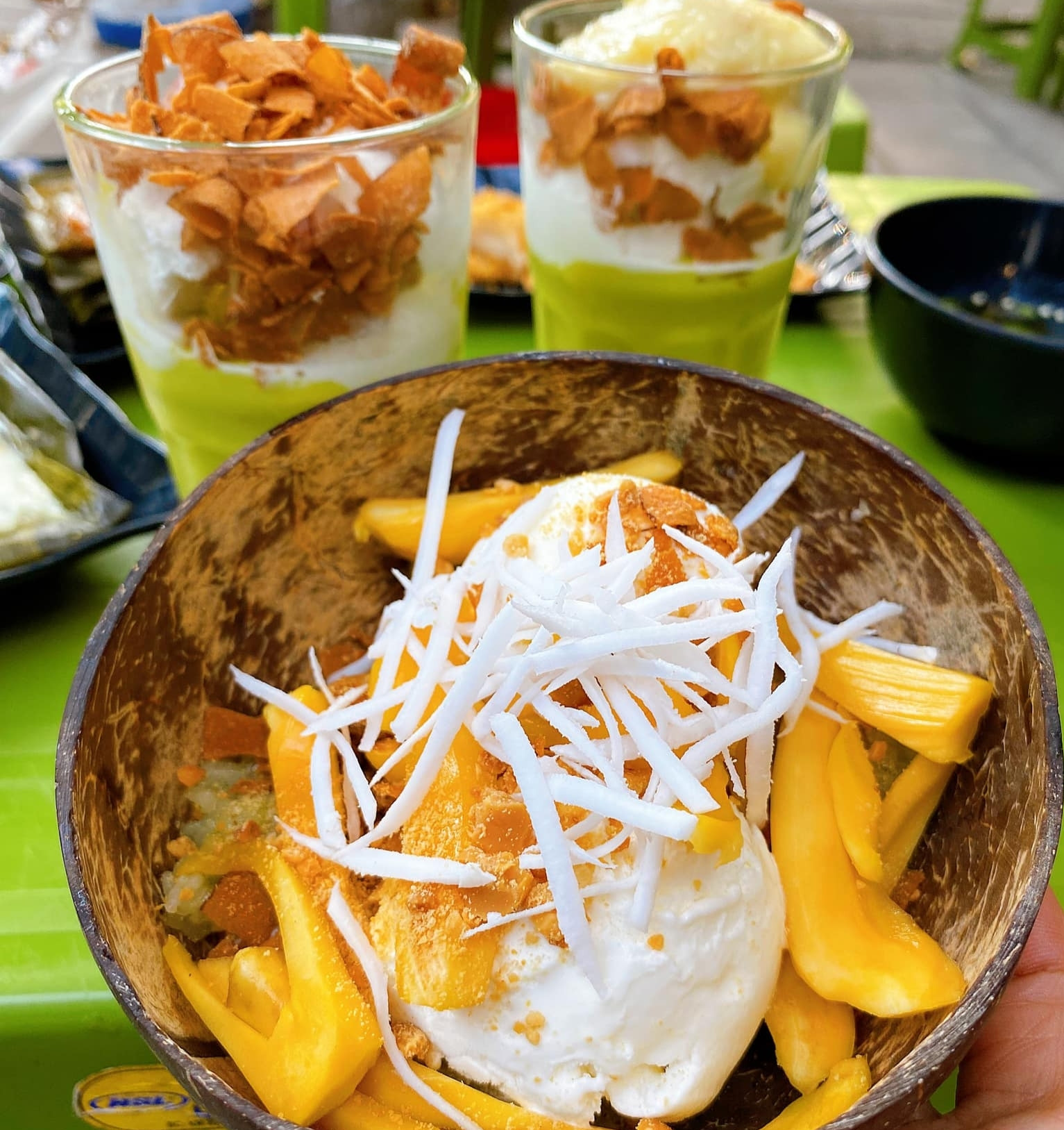 Kem bơ sầu riêng, sinh tố bơ tại đây cũng ngon miệng. Các món giá từ 30.000 đồng. Ngoài ra, quán còn có bánh tráng nướng, bánh tráng trộn.