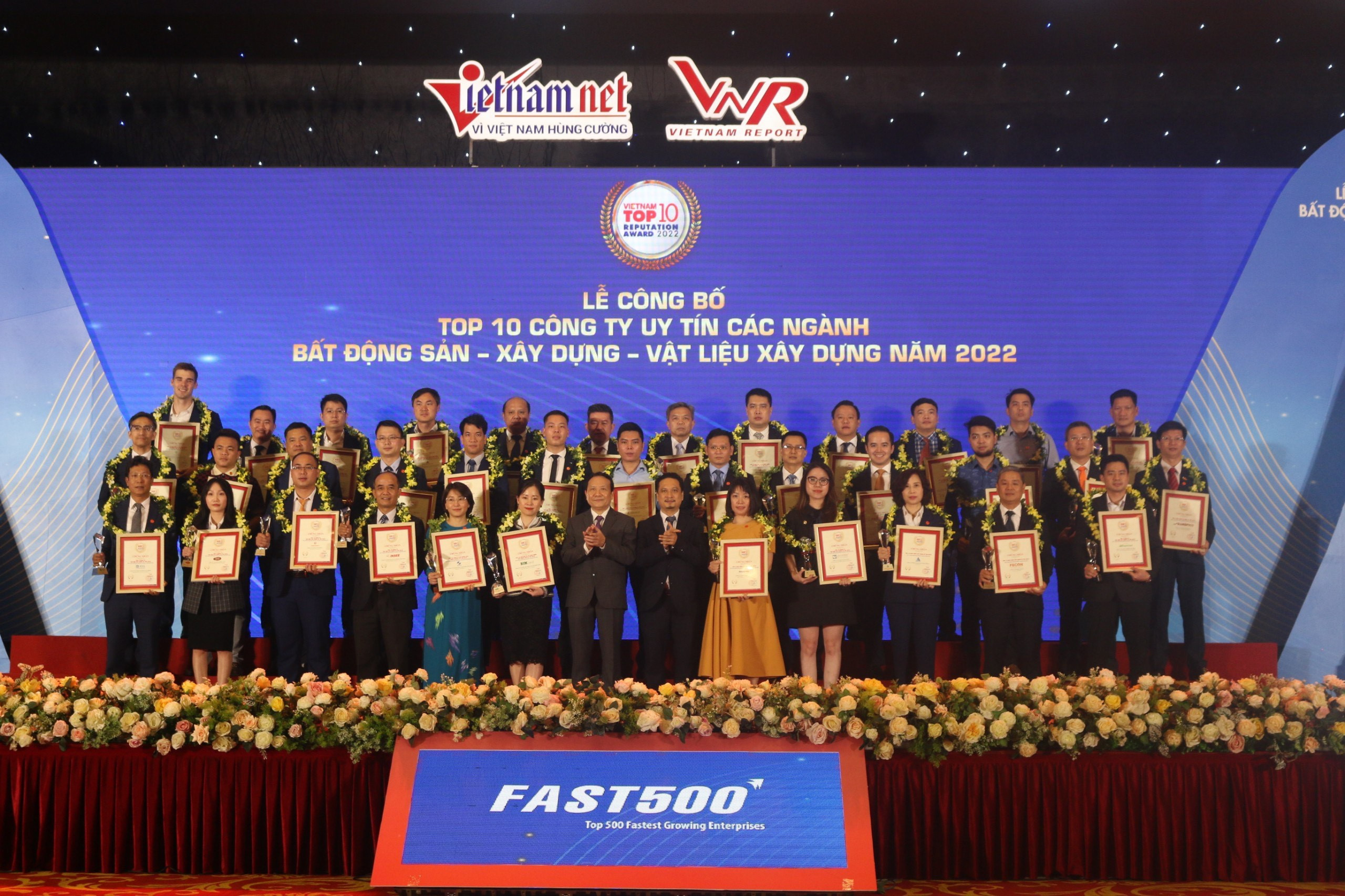 Top 10 vị trí đứng đầu bảng FAST500 năm nay vinh danh các DN đó là: Công ty CP Hưng Thịnh Land; Công ty TNHH Bảo hiểm Nhân thọ MB Ageas; Công ty Tài chính CP Tín Việt; Công ty Tập đoàn Bất động sản Thắng Lợi; Công ty TNHH Thương mại và Sản xuất Hoàng Mai; Công ty CP Sản xuất và Công nghệ Nhựa Pha Lê; Công ty CP Tập đoàn Sao Mai; Công ty CP Sản xuất và Thương mại Nam Hoa; Công ty CP Chứng khoán Tân Việt; Công ty cp Chứng khoán KB Việt Nam.