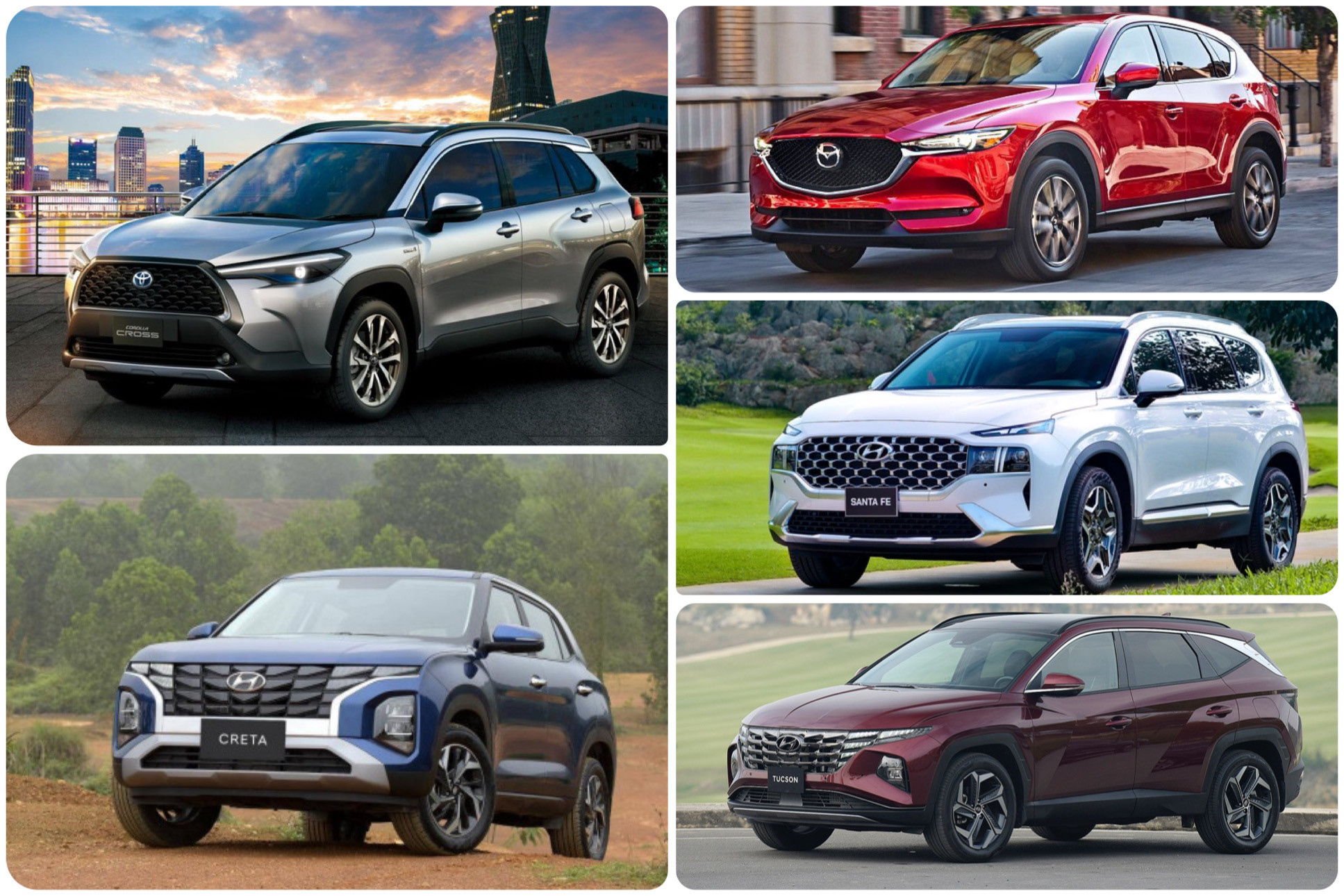 Trong khi đó, top 5 ghi nhận sự trở lại của hai mẫu crossover hạng C là Mazda CX-5 và Hyundai Tucson, thế chỗ cho KIA Sonet và Hyundai Sportage. Cái tên còn lại góp mặt là 'tân binh' Hyundai Creta với doanh số khiến nhiều đối thủ phải ganh tị.