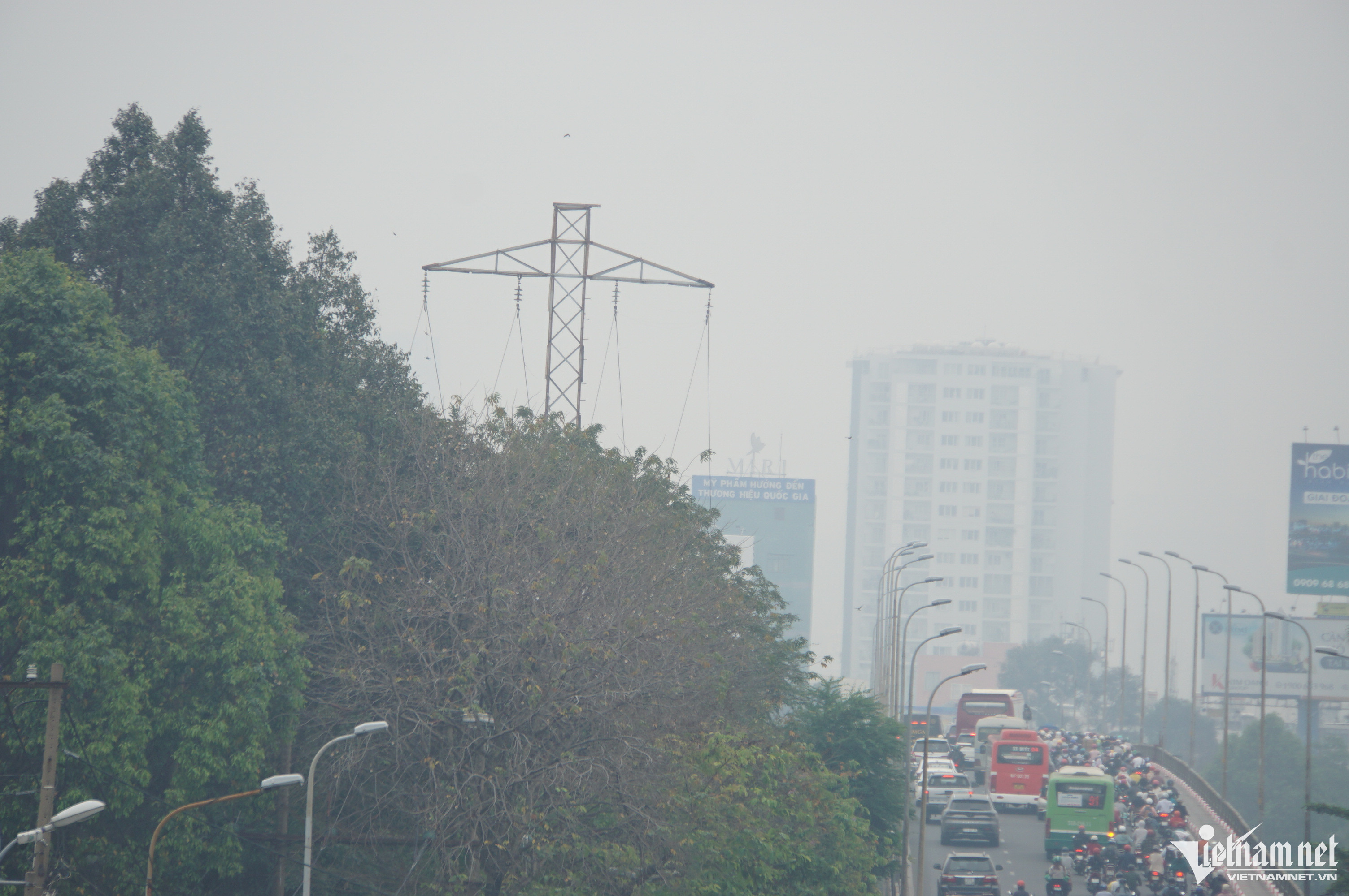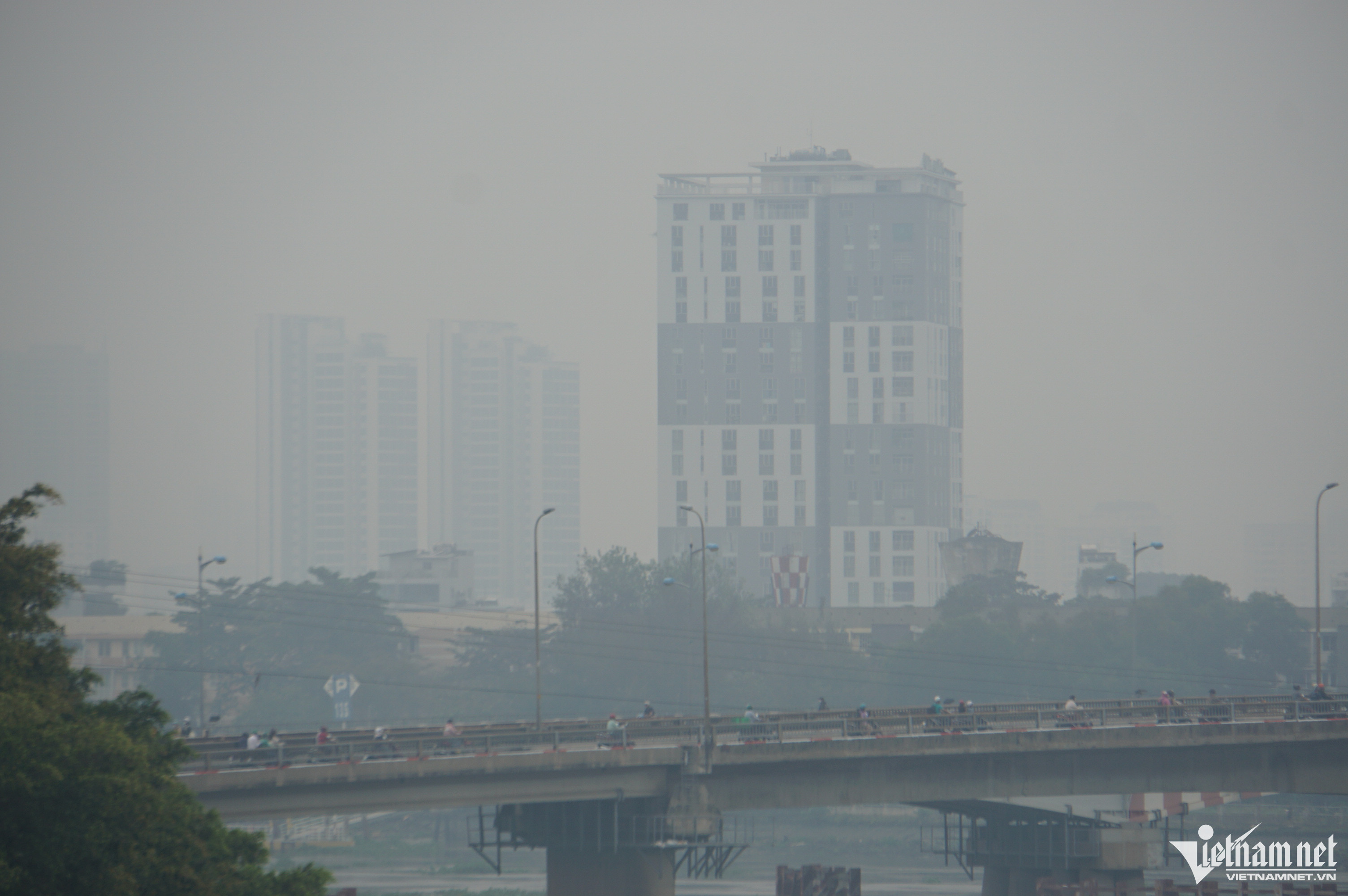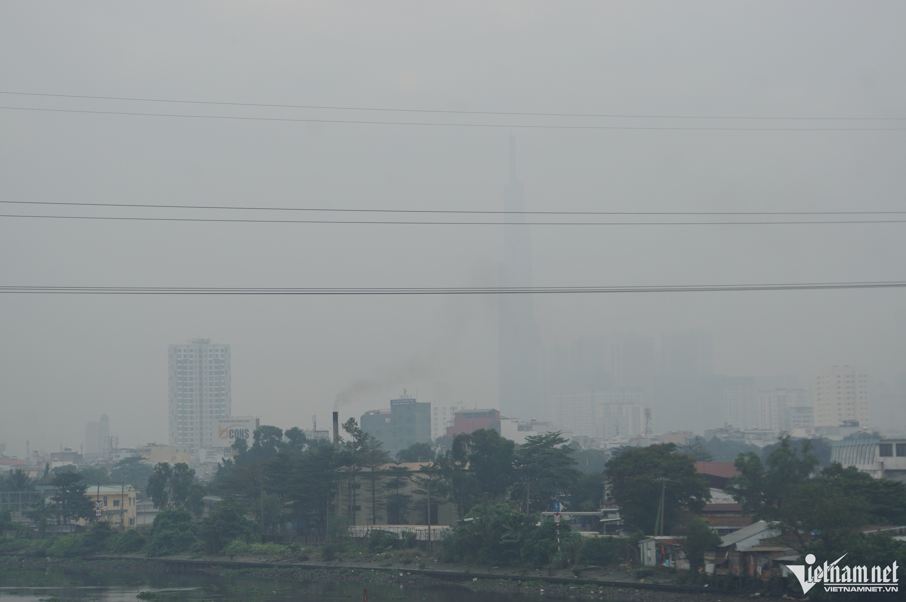 Đến trưa, các tòa nhà cao tầng, khu dân cư vẫn mờ mịt