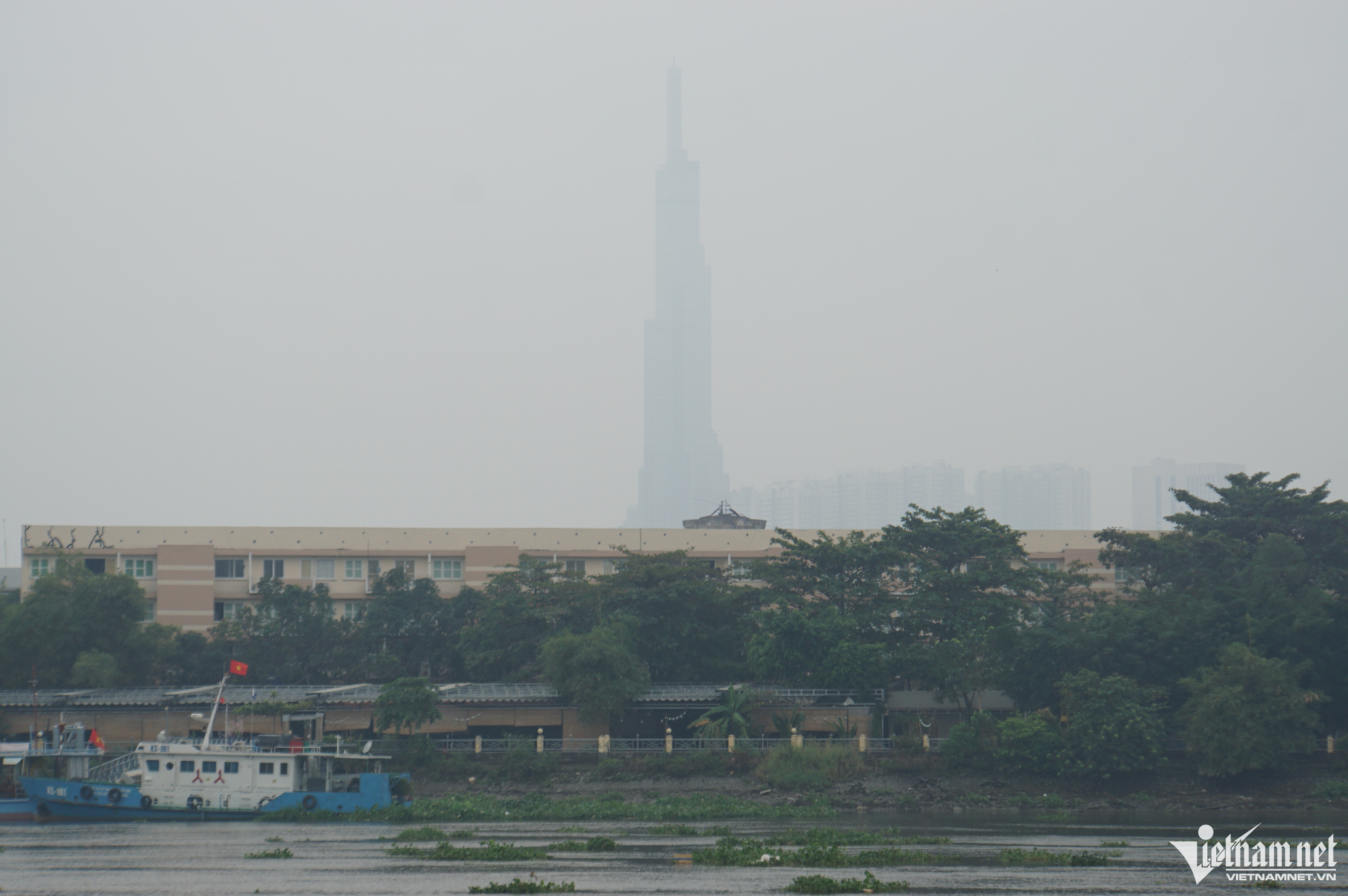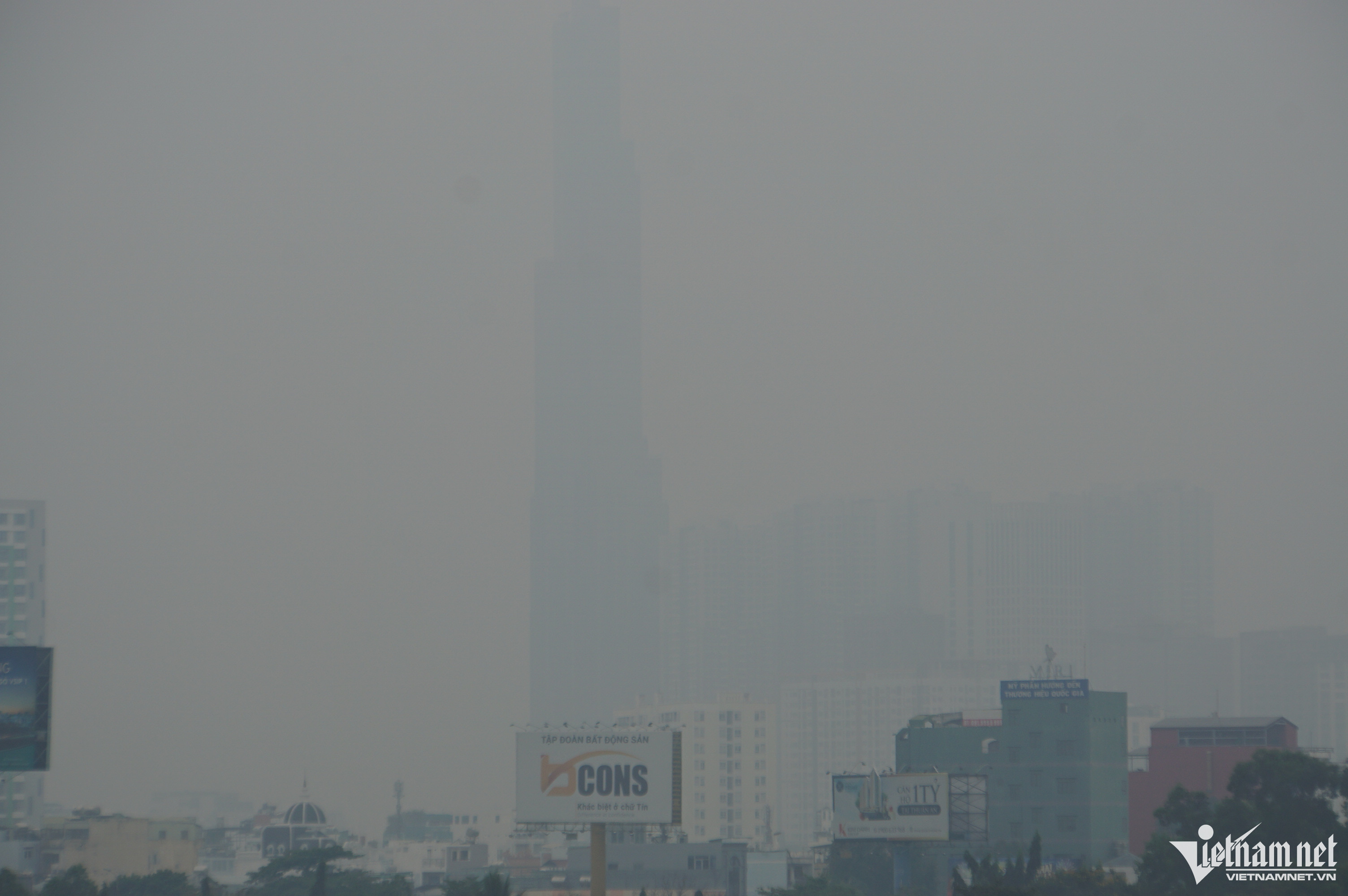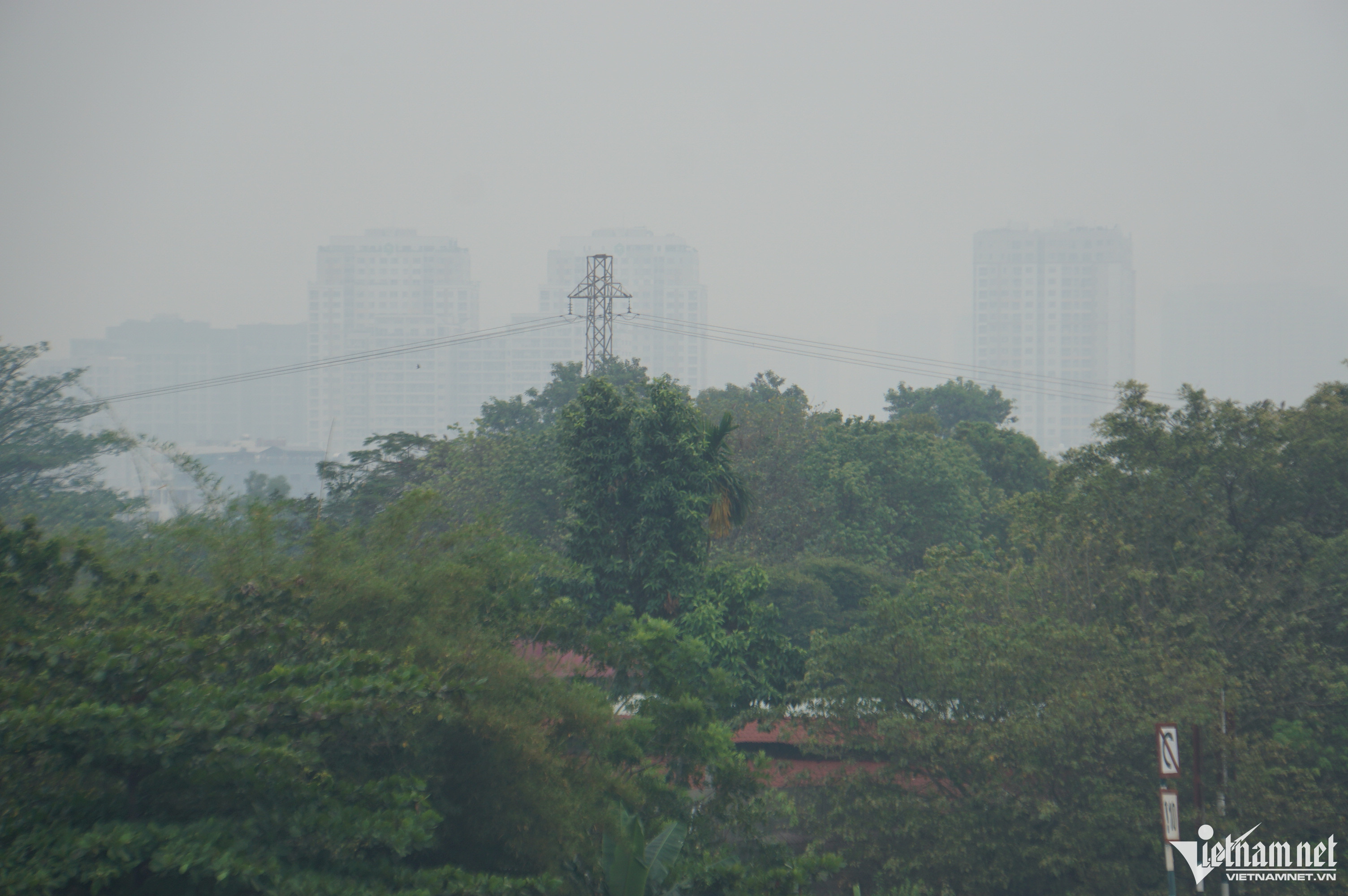 Ở khoảng cách 1.000m, tầm nhìn bị hạn chế. Tất cả khu dân cư, nhà cao tầng đều chìm trong sương mù.