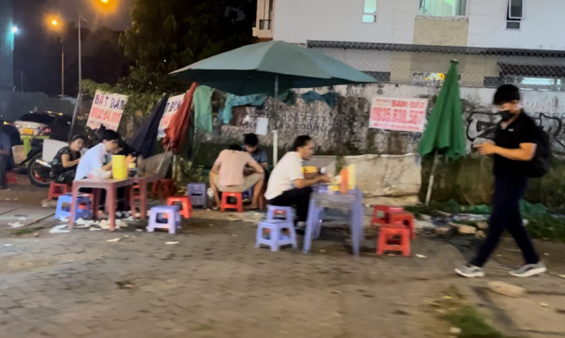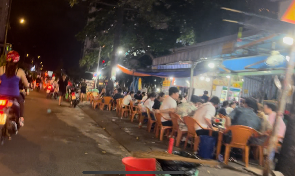 Dạo quanh khu ăn đêm khá nổi tiếng ngay bùng binh Nguyễn Tri Phương (Q10), không khó bắt gặp hình ảnh các quán vỉa hè hoạt động cạnh miệng cống, thùng rác. Lý giải về chuyện này, một chị bán hàng nói: "Xí” được chút vỉa hè là may lắm rồi, hơn nữa đặt gần cống để tiện việc rửa chén, dọn dẹp và gom rác". Một quán lẩu có bếp nằm phía trong nhà hẳn hoi, nhưng khi bước vào thì không thể tưởng tượng nổi vì đặt ngay cửa phòng vệ sinh bốc mùi xú uế, thực phẩm dùng chế biến món ăn để vương vãi trên nền nhà, khách cứ thế bước qua để đi vệ sinh.