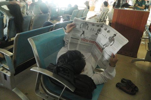 Nhiều người giết thời gian bằng cách đọc báo, nằm ra ghế