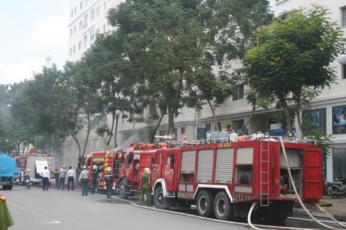 Tiếp theo, Phòng Cảnh sát PCCC quận 4 cũng đã được huy động tiếp sức. Khoảng 7 xe chữa cháy và hàng chục cán bộ chiến sĩ đã tham gia chữa cháy.
