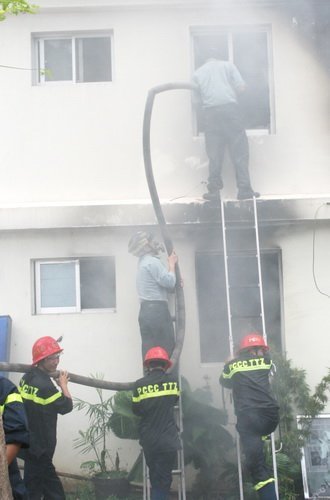 Một số khác leo lên cao để khống chế đám cháy. Sau một giờ, đám cháy được dập tắt hoàn toàn.