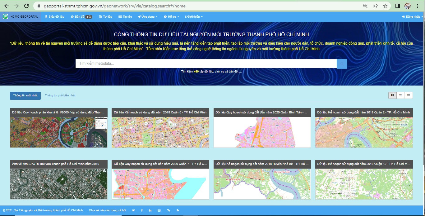 Cổng thông tin dữ liệu tài nguyên và môi trường TP.HCM được Sở Tài nguyên - Môi trường TP.HCM hoàn thành xây dựng vào năm 2021 và trải qua quá trình thử nghiệm với website: https://geoportal-stnmt.tphcm.gov.vn.