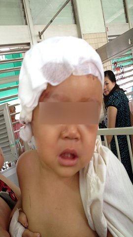 Bệnh nhi tên Trần Ngọc Yến Nhi, 10 tháng tuổi, ngụ tại Bến Tre. Trong lúc bé được bố bế ra sân chơi thì bất ngờ gặp tai nạn.