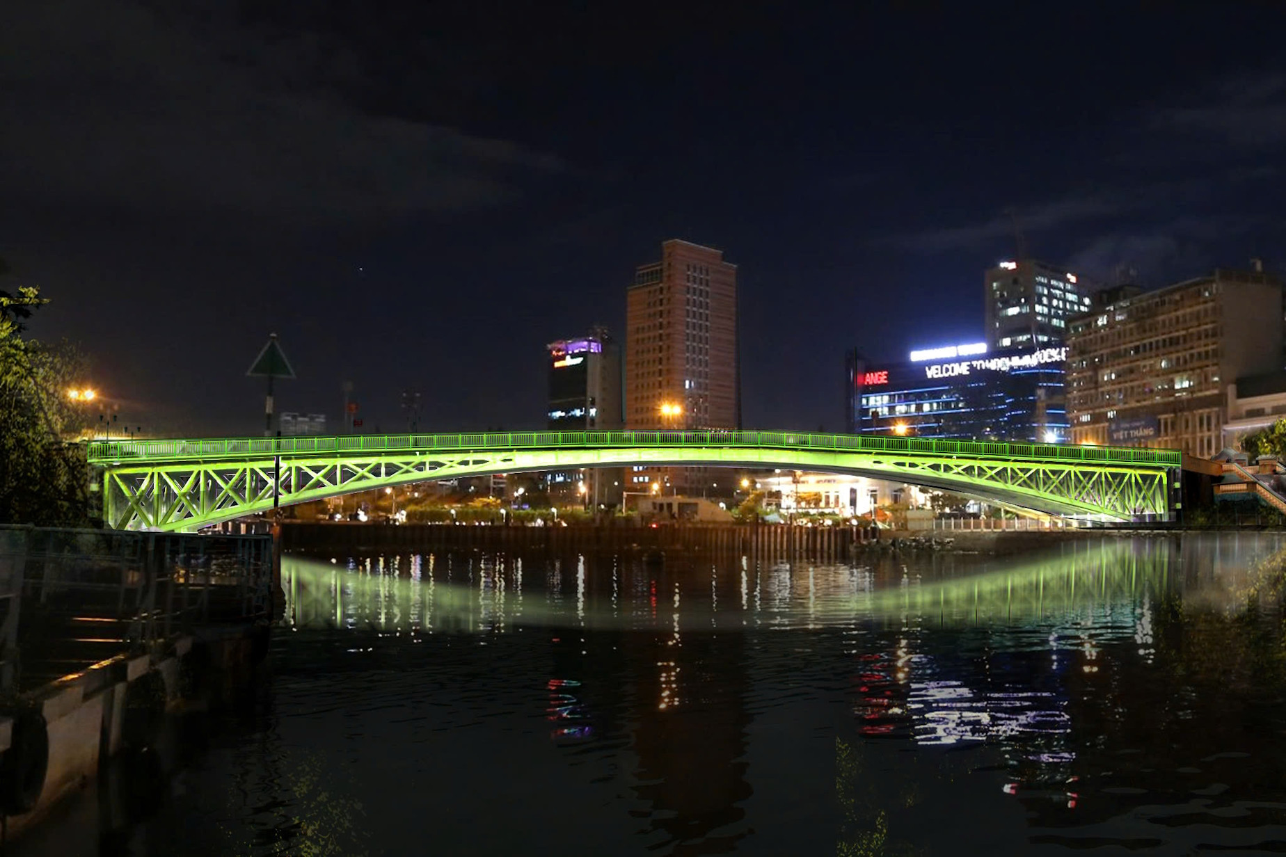 Cụ thể, với Cầu Móng sẽ lắp đặt 414 bộ đèn LED chiếu sáng mỹ thuật, 200m LED dây chiếu sáng mỹ thuật và 12 trụ đèn trang trí.