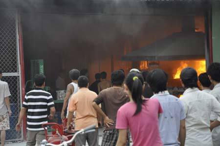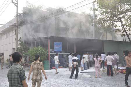 - Một tiếng nổ lớn phát ra kèm theo lửa lớn bùng lên từ lò hơi công ty giày da Giai Mỹ đã làm hàng trăm công nhân tháo chạy hoảng loạn.