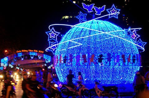 Đường Lê Duẩn với dãy khung đèn led xanh, trắng và đèn sao kết thành dải thiên hà...