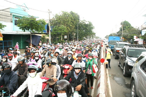Khi chúng tôi rời khỏi bến phà, đoàn xe tiếp tục dài thêm. Theo thông lệ, phải đến chiều lượng xe mới bớt dần để đến chiều ngày 2 và 3/9, ùn tắc lại dồn về phía Nhơn Trạch, khi khách từ Vũng Tàu và các khu vui chơi trở về.