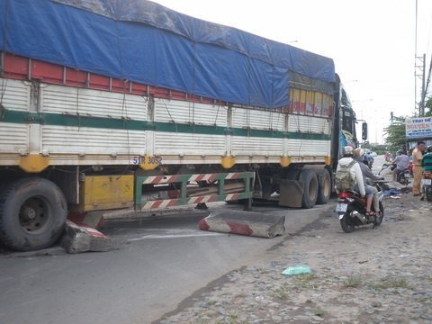 Đến 13g30 cùng ngày, trên cầu vượt Linh Trung (P.Tân Phú Q.9), xe đầu kéo