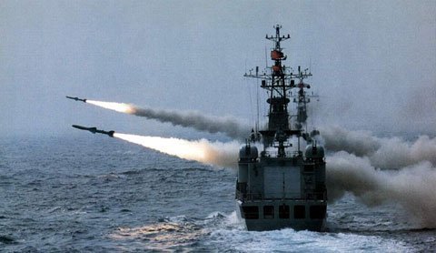 Tàu khu trục TQ phóng tên lửa chống hạm. Ảnh: vostokstation |