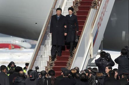 Tân đệ nhất phu nhân Trung Quốc Bành Lệ Viện khi xuất hiện cùng chồng tại sân bay Nga dường như đã giúp cho hình ảnh ông Tập Cận Bình mềm mại hơn.
