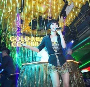 Cô ca sĩ Hà thành đa tài đã khuấy động không khí của buổi tiệc đêm vừa diễn