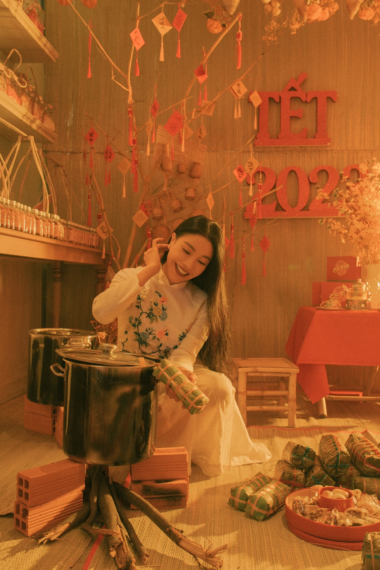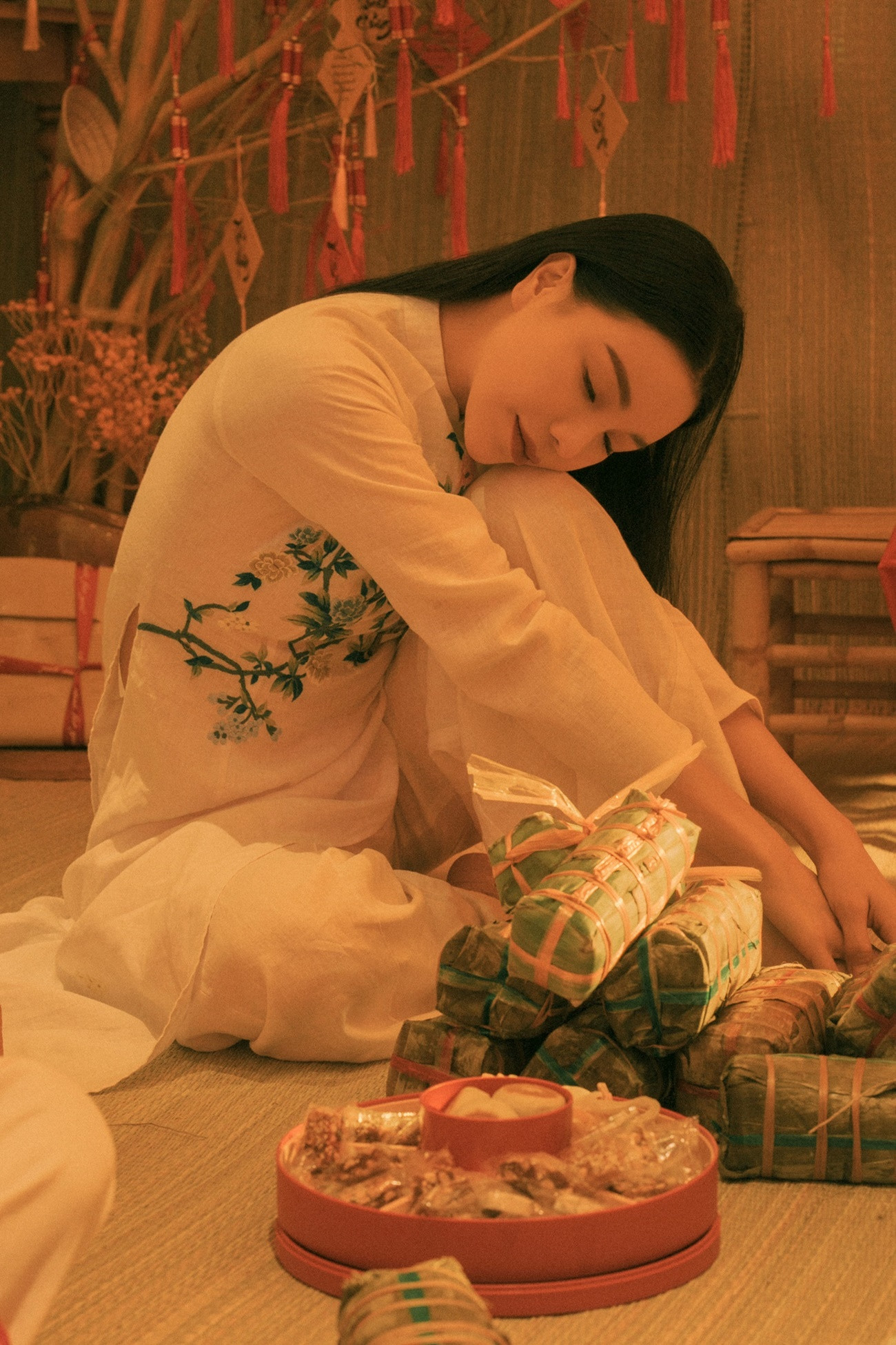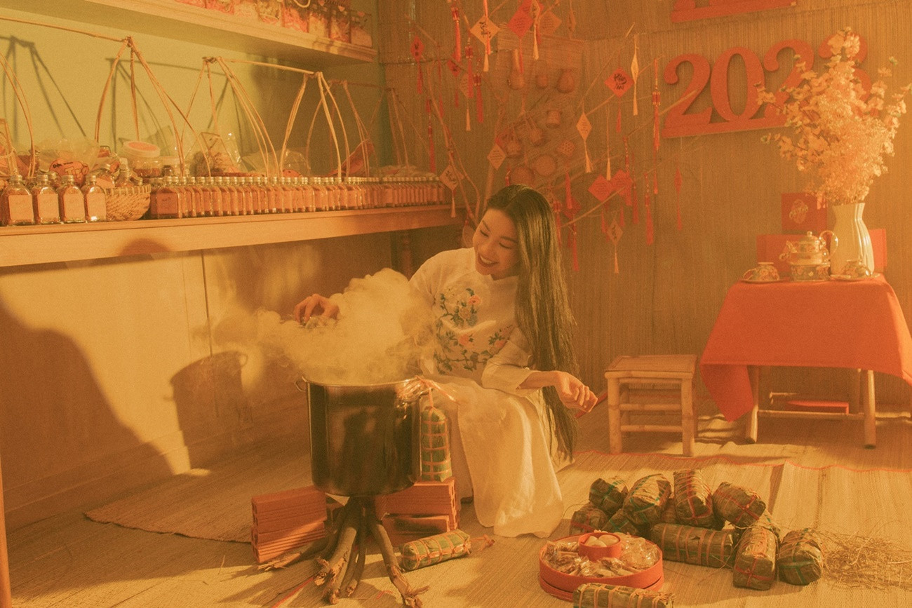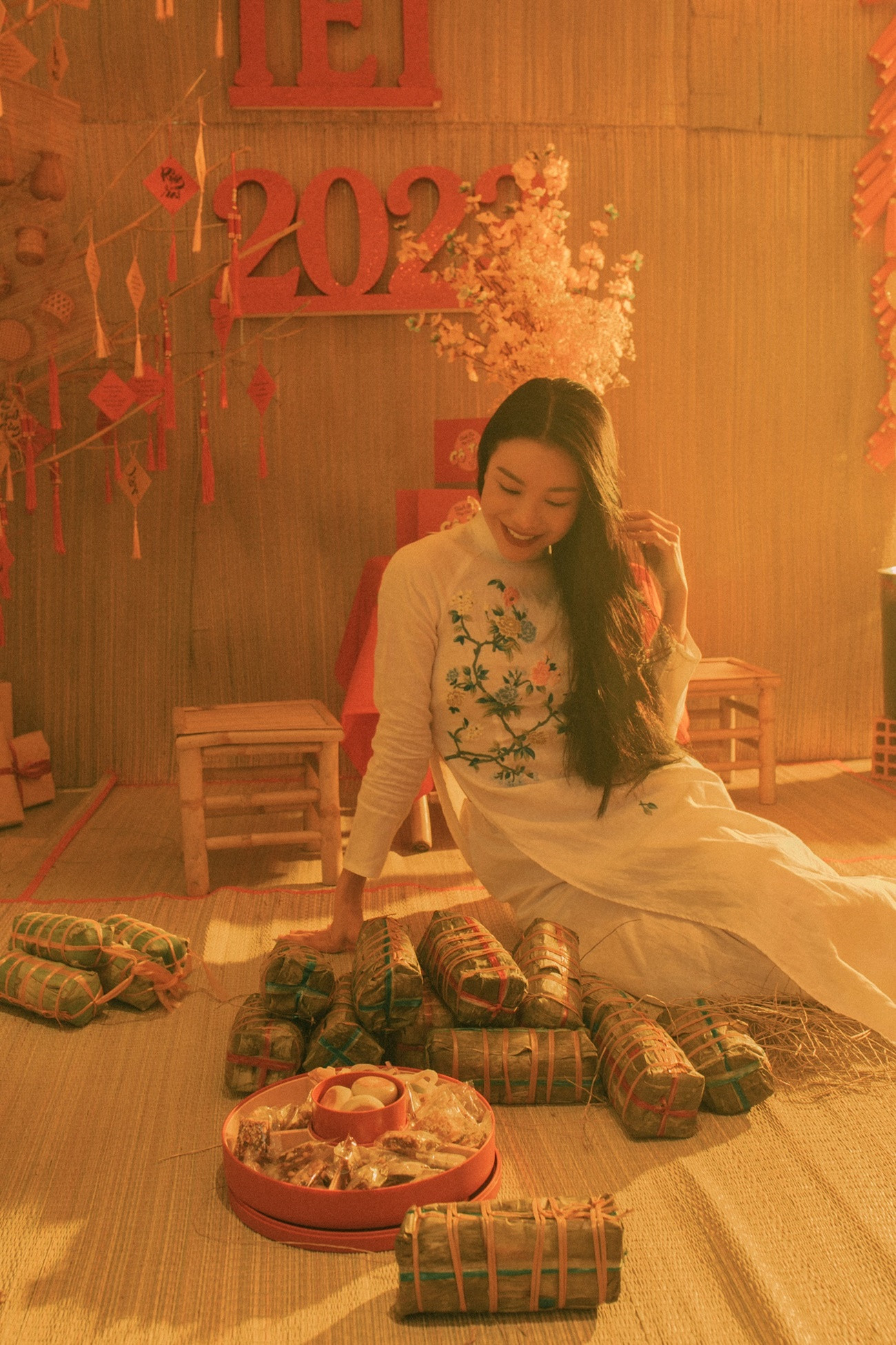 Người đẹp Trà Ngọc Hằng vừa chụp bộ ảnh phong cách Tết xưa và phát hành MV nhạc xuân tặng khán giả.