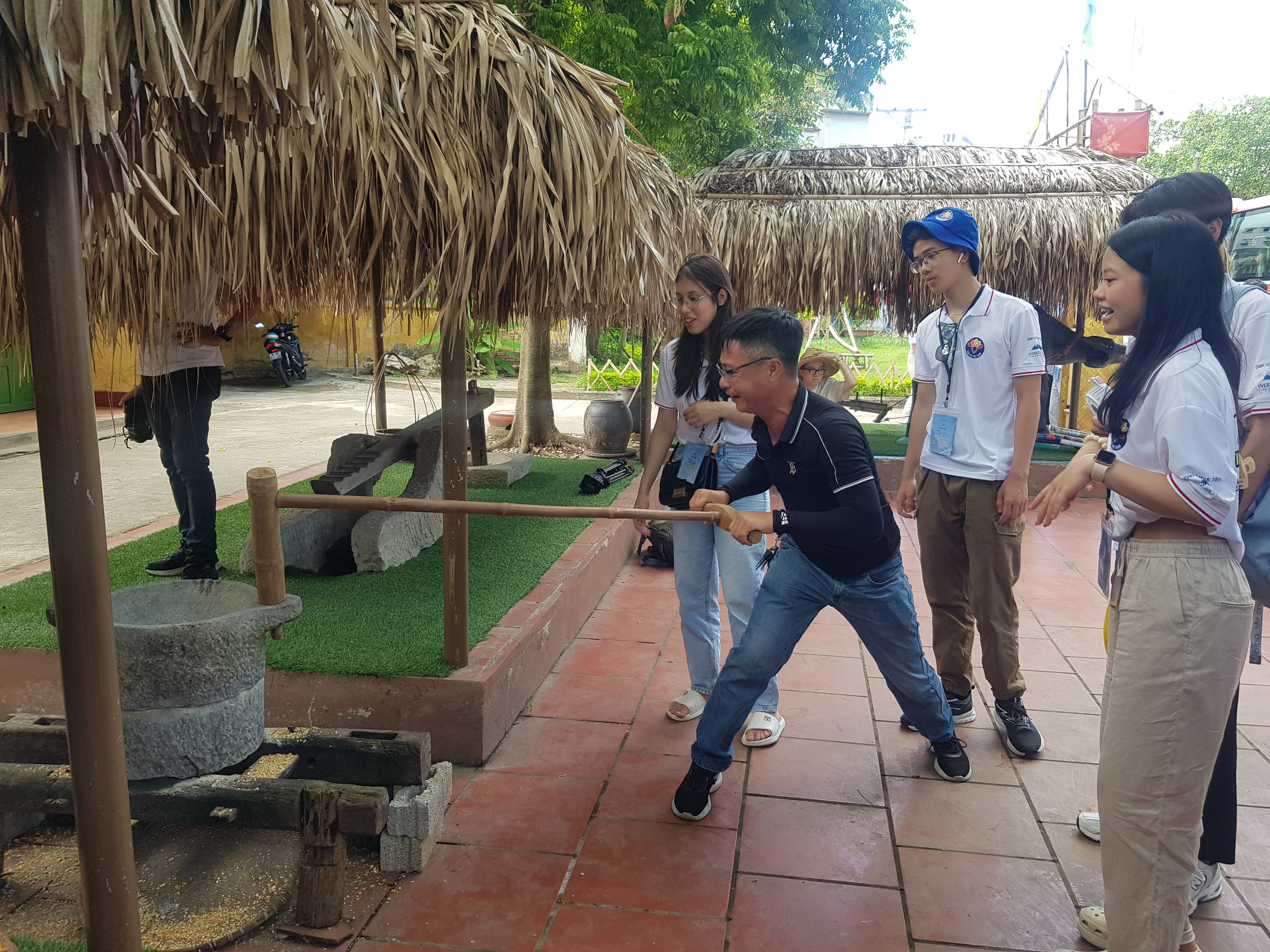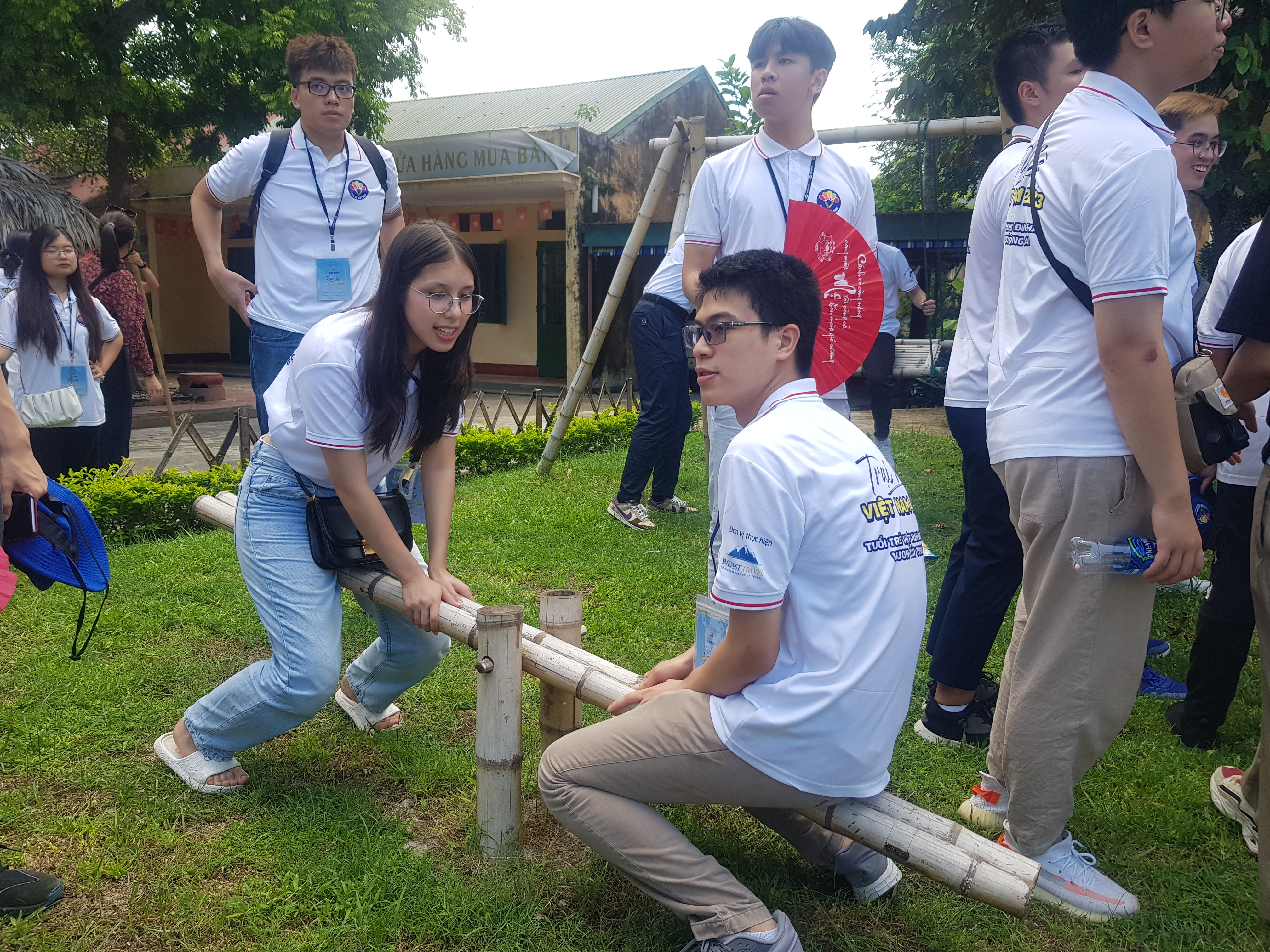 Sau khi tham quan, tìm hiểu lịch sử, văn hóa, các đại biểu đã được trải nghiệm các trò chơi, trò diễn dân gian như đi cầu thăng bằng, bịt mắt đánh cồng, nhảy sạp, khua luống…