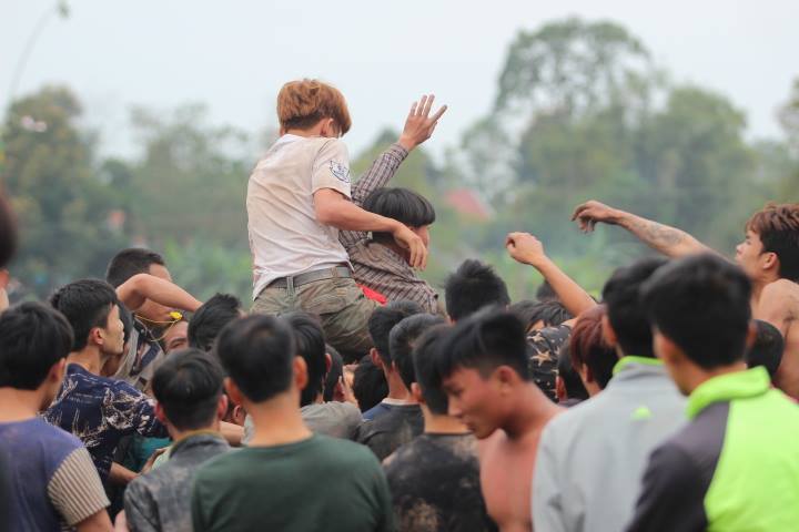Theo quy định BTC hạn chế số lượng người đánh phết là mỗi đội 50 người, tuy nhiên hàng trăm người dân ùn ùn phá rào lao vào cướp phết ... |