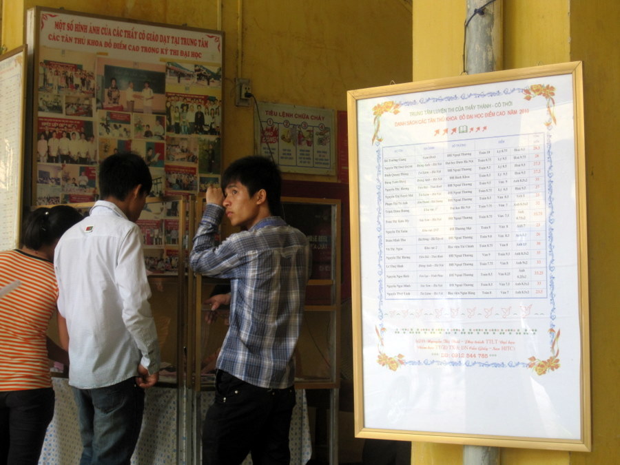“Lúc đầu em luyện thi ở trung tâm ĐHSP, nhưng lớp đông quá, lại hay bị cắt xén thời gian, học phí cũng cao hơn ở đây nên chỉ học một buổi rồi nghỉ” – Việt kể.