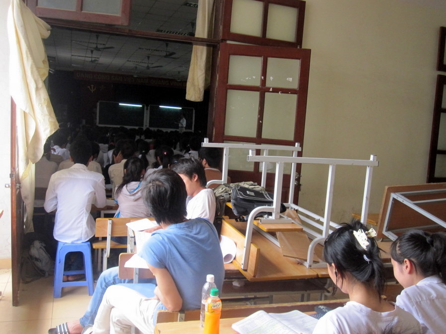 xếp ghế ngồi ngoài cửa, hay kê thêm bàn để học từ bên ngoài… hành lang. Từ cuối