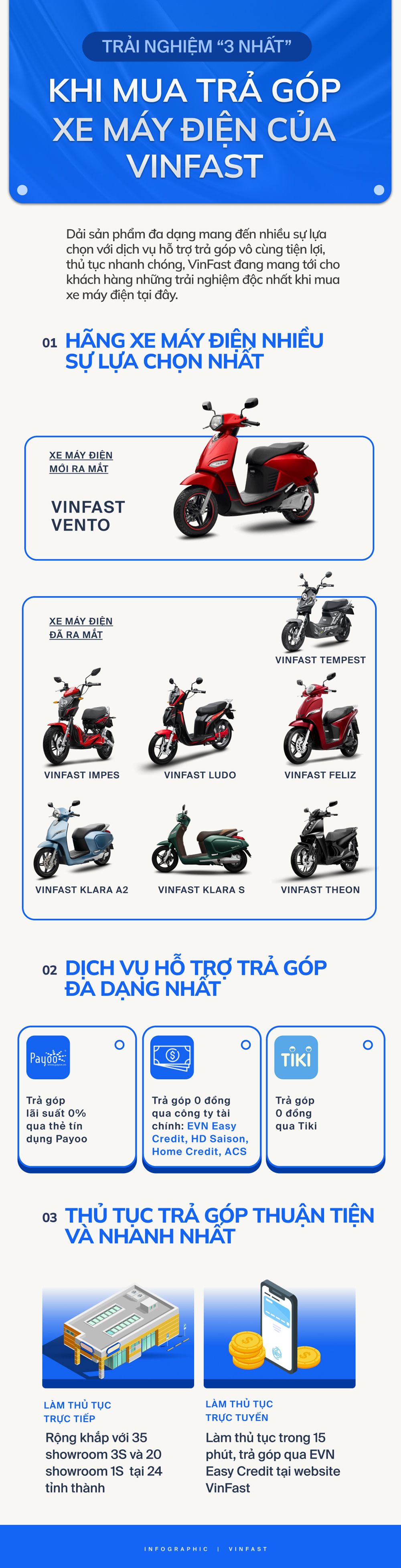 Người mua xe máy điện VinFast qua hình thức trả góp sẽ hưởng nhiều lợi ích: đa dạng lựa chọn sản phẩm, dịch vụ thanh toán tiện lợi, được hỗ trợ cao.