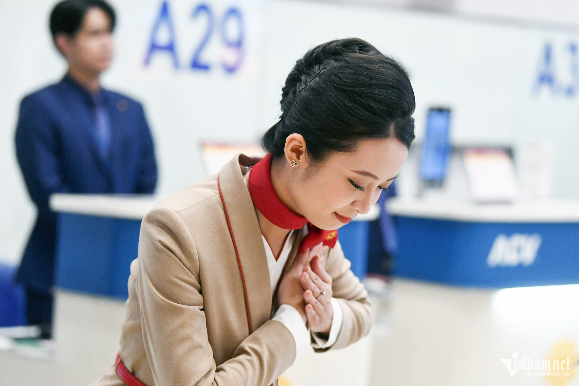 Nhiều hành khách có mặt tại nhà ga T1 tỏ ra lạ lẫm với hình ảnh các tiếp viên hàng không của hãng bay mới. Trang phục được thiết kế kết hợp giữa nét truyền thống và hiện đại, lấy cảm hứng từ tà áo ngũ thân xưa và phong thái của Nam Phương Hoàng hậu. Tông màu chủ đạo là nâu be. Kiểu mũ của tiếp viên là mũ cano (thường được gọi là mũ pillbox trong tiếng Anh, hoặc đôi khi là mũ garrison trong quân sự) là một phần đồng phục mang tính biểu tượng, được nhiều hãng hàng không sử dụng cả trong quá khứ và hiện tại.