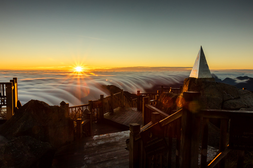 Song điểm lý tưởng nhất để ngắm biển mây có lẽ là đỉnh Fansipan. Đến với đỉnh núi cao nhất Đông Dương mùa này, du khách ngỡ như lạc vào “bồng lai tiên cảnh” bởi khung cảnh bảng lảng mây trắng, ẩn hiện trong mây là quần thể văn hóa tâm linh mang dáng dấp chùa Việt cổ. Ở độ cao 3.143 m, thu vào tầm mắt biển mây lùa qua những khe núi cao, ùa vào thung lũng, ken lẫn màu xanh mướt của núi rừng Hoàng Liên Sơn hùng vỹ, trái tim cũng như muốn lạc nhịp.