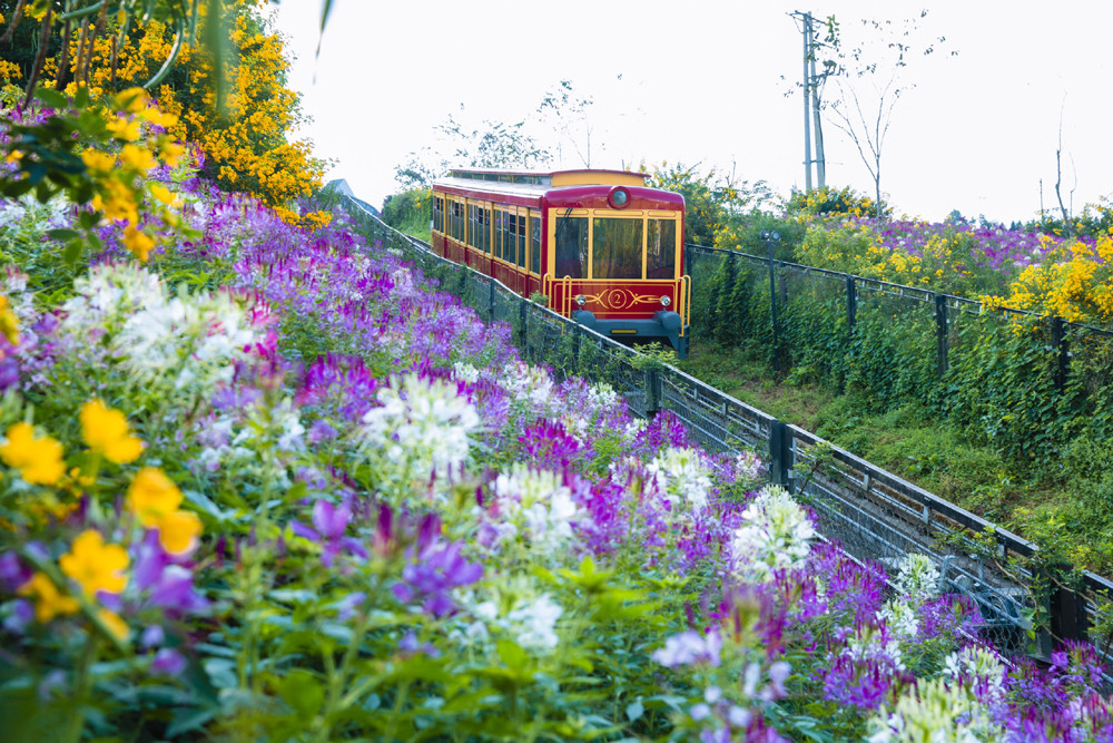 Mùa thu Sa Pa không chỉ có lúa, có mây, mà nay còn muôn vàn sắc hoa, mời gọi bước chân du khách dọc đường khám phá đỉnh Fansipan. Từ tuyến tàu hỏa leo núi Mường Hoa, du khách thấy nào là bạt ngàn triền hoa đuôi công đang bung nở sắc hồng tím trên hơn 7,5ha hay con đường hoa cúc magic nhiều màu. Từ ga đến cáp treo tới quần thể văn hóa tâm linh Fansipan là muôn vàn sắc hoa đang chờ đón như: lá cờ Tổ quốc kết từ 150.000 bông hoa tươi, vườn hoa sen đá 1 vạn cây tạo thành tiểu cảnh đỉnh Fansipan hay triền dơn lúa rộng cả hecta đang bung sắc đỏ cam trên triền núi cao tưởng như chẳng loài cây nào sống nổi.