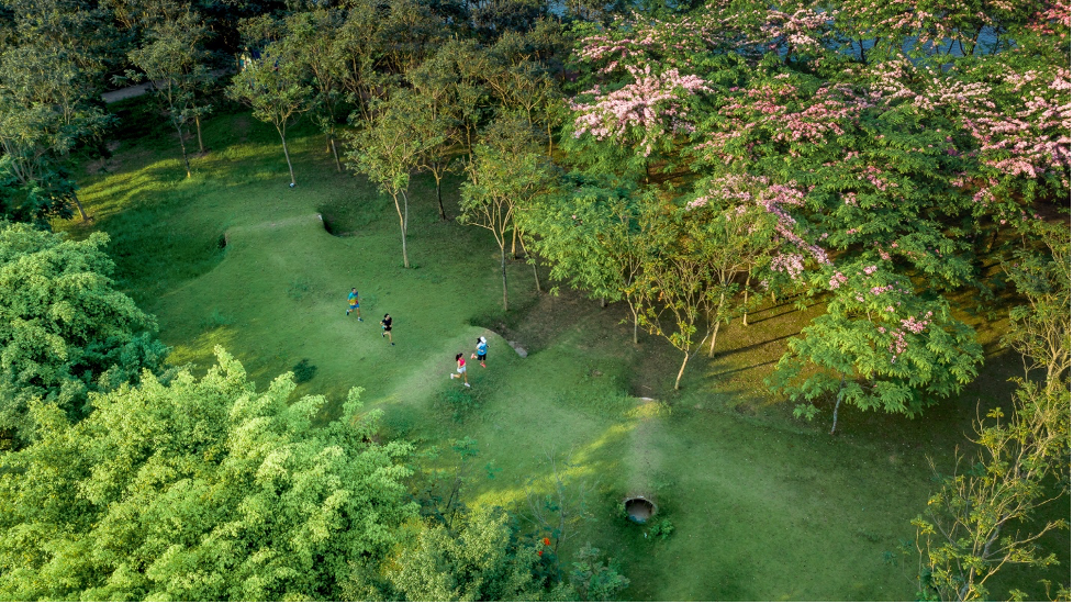 Ecopark Marathon 2023 sở hữu cung đường City Trail độc đáo, kết hợp giữa đường nhựa và đường mòn uốn lượn. Các vận động viên có thể vừa lướt qua khu phố đông vui tấp nập rồi lại thấy mình lọt vào khung cảnh vắng lặng chỉ còn cây xanh thơ mộng và những vườn hoa rực rỡ.