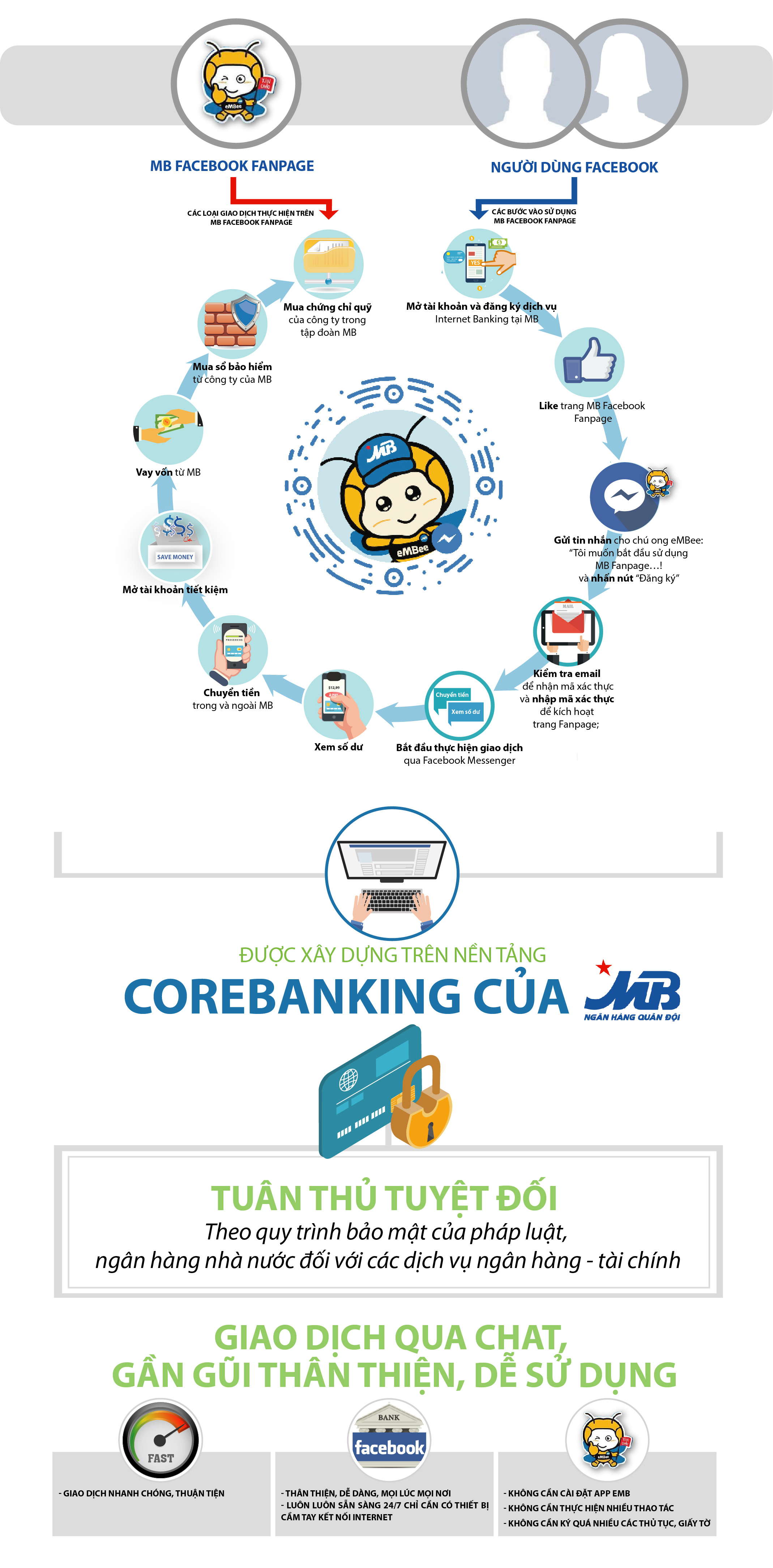 Ngân hàng TMCP Quân Đội (MB) cho ra mắt kênh giao dịch ngân hàng qua Facebook với những tính năng thuận tiện nhanh chóng, gia tăng những trải nghiệm thú vị, tiết kiệm thời gian cho khách hàng.