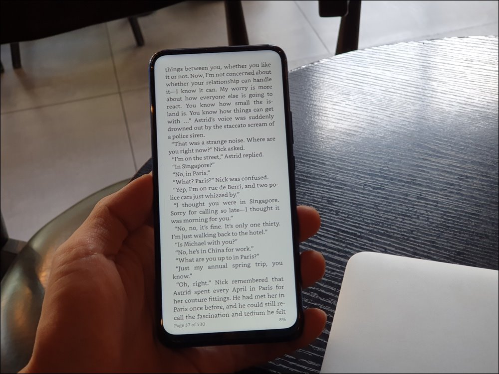 Trong điều kiện ánh sáng yếu, độ sáng màn hình có thể giảm xuống mức thấp 2 nits giúp cho việc hiển thị nội dung dễ chịu, không bị chói.