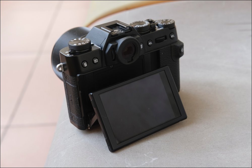 X-T30 trông gần giống với tiền nhiệm X-T20, mặc dù màn hình LCD 3 inch của nó mỏng hơn 1,3mm và cũng hỗ trợ lật theo hai hướng lên xuống để tiện cho việc ngắm chụp, lấy nét trên màn hình cảm ứng. Hơi tiếc khi màn hình không hỗ trợ xoay ngang nên không tối ưu cho việc chụp ảnh dọc.