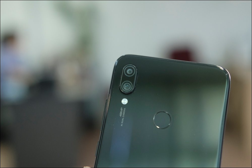 Thêm một điều thú vị là đèn LED thông báo của Redmi Note 7 nằm ở phần cằm, vị trí khá lạ nhưng thuận tiện để người dùng không bỏ lỡ những thông báo mới. Mặt lưng kính thể hiện sự chuyển tiếp liền mạch với sườn máy.