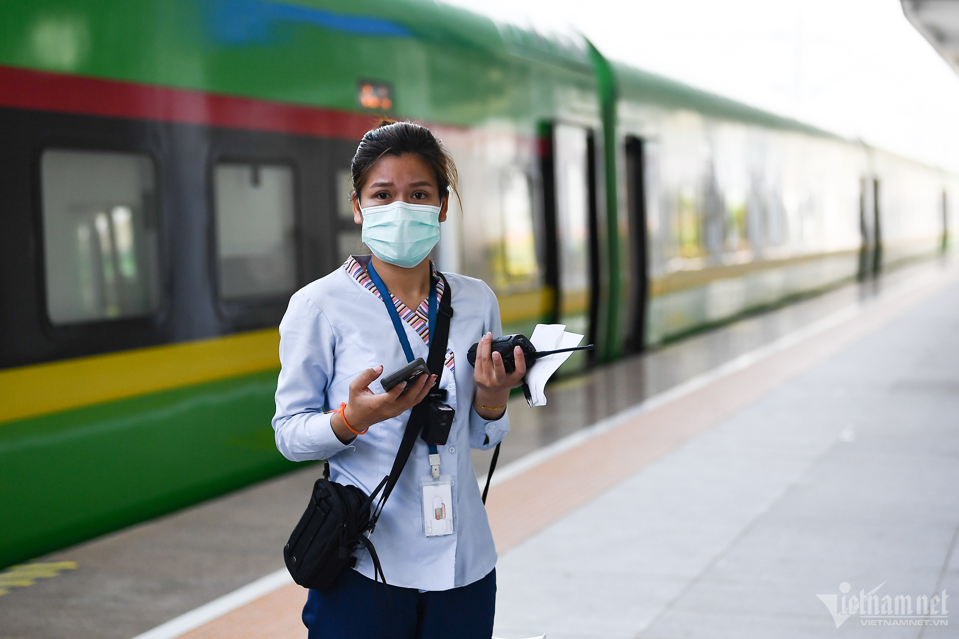 Khi qua cửa kiểm soát, khách sẽ đưa vé kèm hộ chiếu cho nhân viên đường sắt để đối chiếu tên và quét mã.