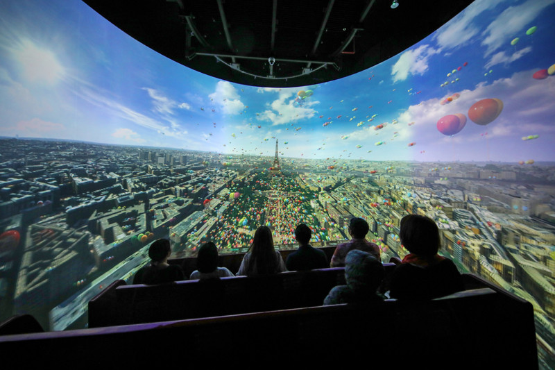 Không chỉ đưa du khách “phiêu” bằng kiến trúc, nghệ thuật trình diễn, Lâu đài Mặt trăng còn có khu vực dành riêng cho các tín đồ công nghệ. Trí tưởng tượng của bạn sẽ được bay rất xa khi khám phá thế giới ảo qua các công nghệ hàng đầu thế giới tại rạp “Mắt bay”. Hai phòng chiếu phim 48 ghế luôn sẵn sàng mang tới trải nghiệm rạp airship du hành đầy ngoạn mục như tại các công viên nổi tiếng trên thế giới, giúp xóa nhòa ranh giới giữa thực tế và viễn tưởng. Đây là một trong những trải nghiệm mới được du khách đặc biệt yêu thích tại Sun World Ba Na Hills.