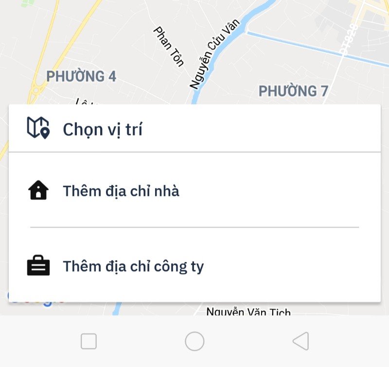 Ngoài ra, có thể thêm địa chỉ nhà, địa chỉ nơi làm việc ở các mục Thêm địa chỉ nhà, Thêm địa chỉ công ty để tiết kiệm thời gian sử dụng ứng dụng ở lần sau với hai địa chỉ thường dùng.