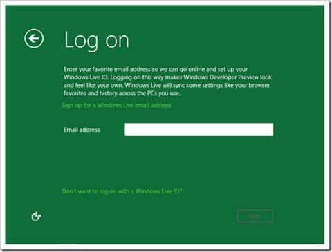 Windows 8 có sử dụng nền tảng đám mây nên cho phép đăng nhập từ tài khoản email Microsoft Hotmail (*@hotmail.com) hoặc Windows Live Hotmail (*@live.com). Khi dùng cách này, những thiết lập trong tài khoản sẽ được đồng bộ hóa rất hay, như bookmark của trình duyệt, lịch trình duyệt web... và ngay cả tên đăng ký với email sẽ tự áp vào cho Windows 8.