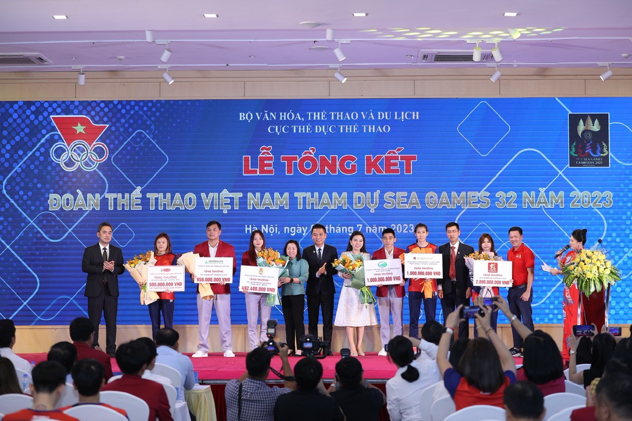 Tối ngày 6/7/2023, Tổng cục Thể dục Thể Thao (TDTT) và Uỷ ban Olympic Việt Nam đã tổ chức Lễ tổng kết và trao thưởng cho đoàn thể thao Việt Nam dự SEA Games 32 sau khi “bội thu" 359 tấm huy chương, bao gồm 136 huy chương vàng (HCV).
