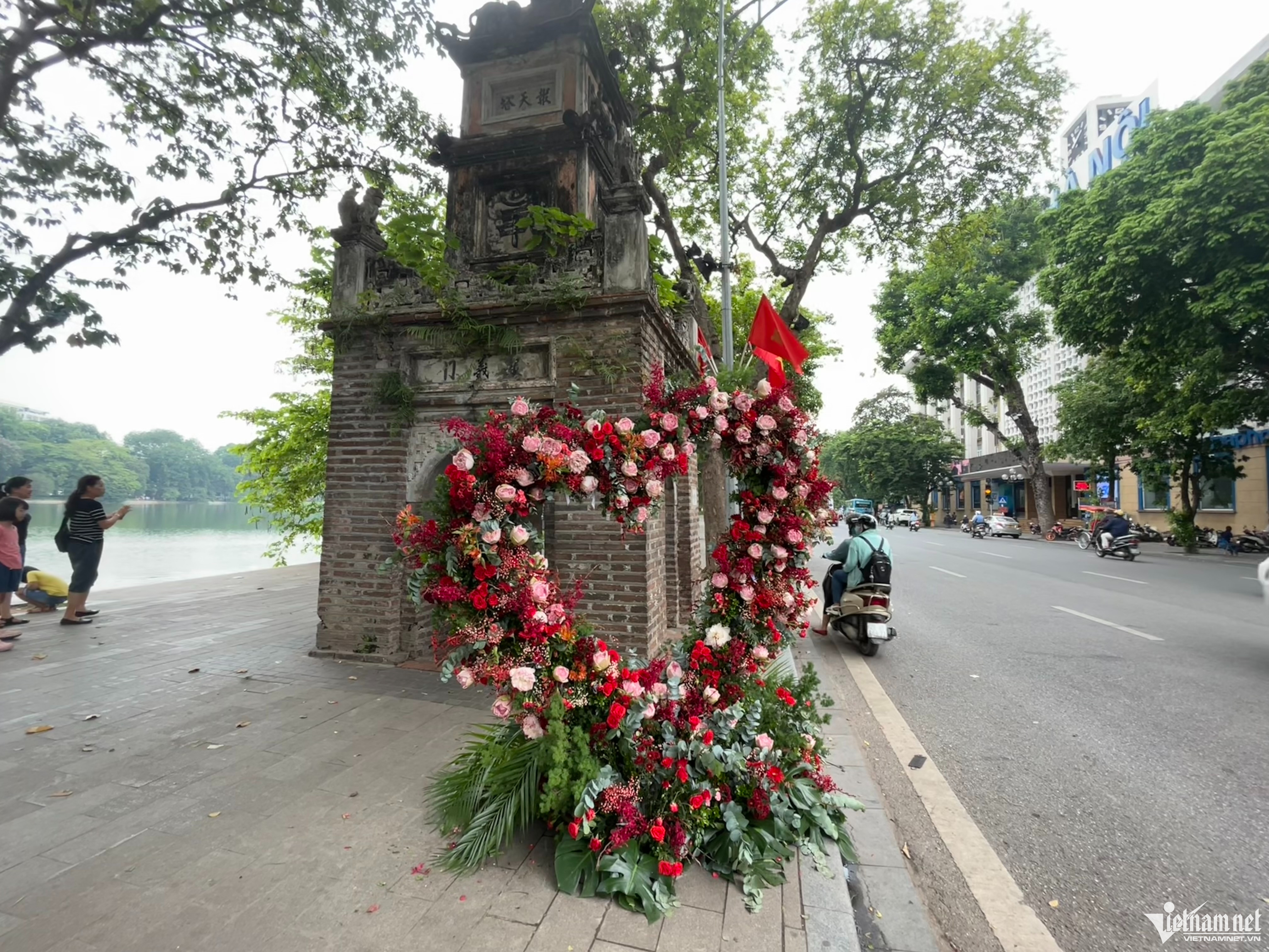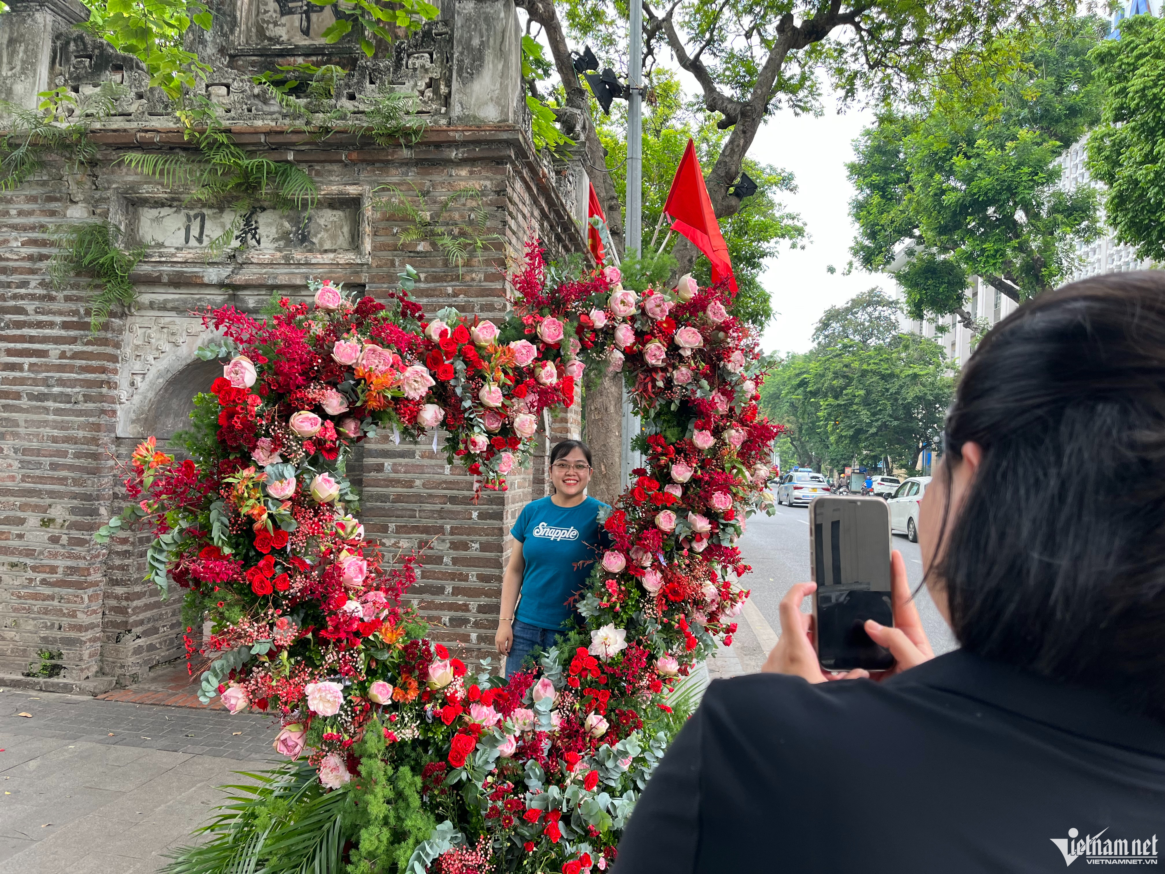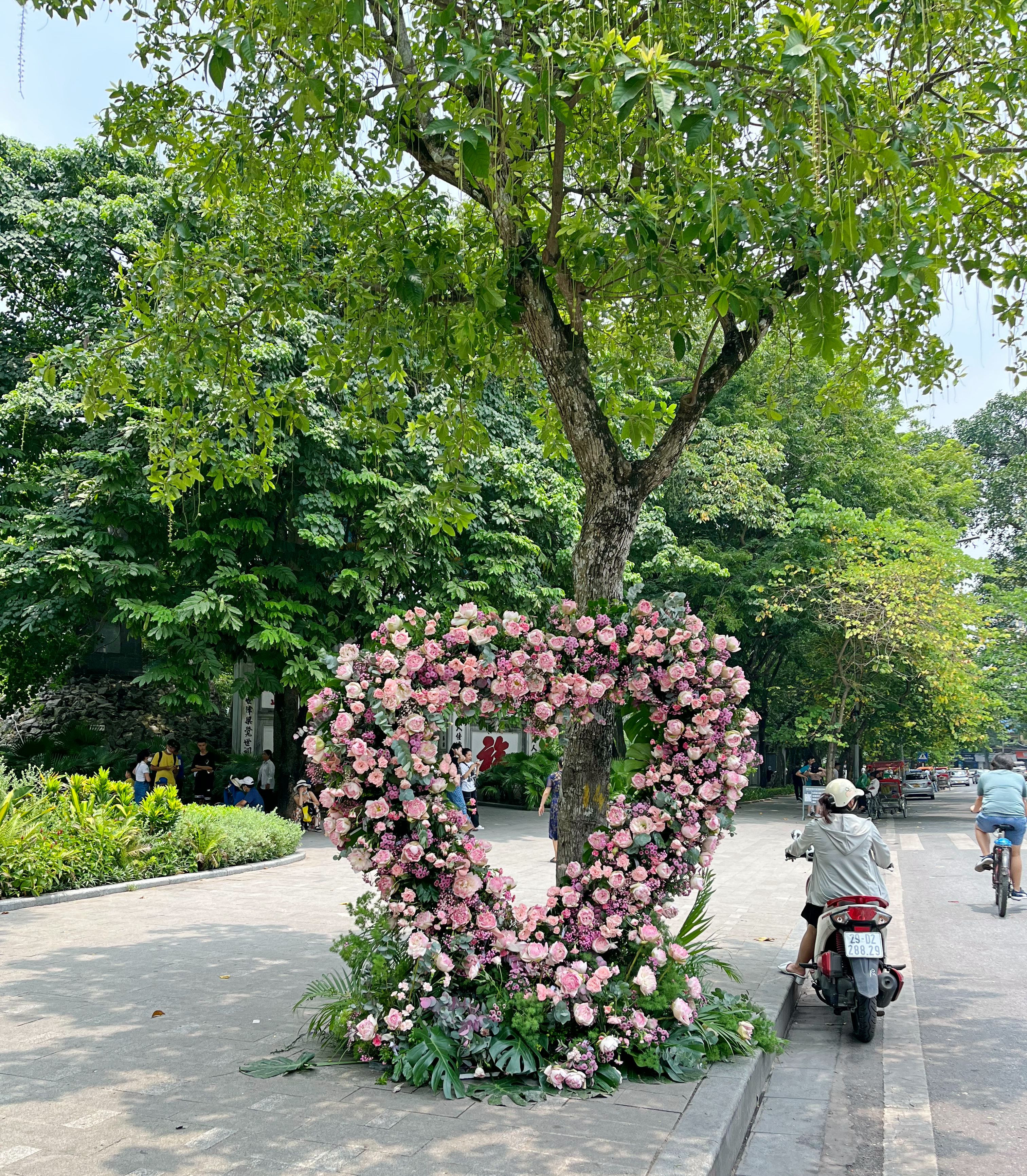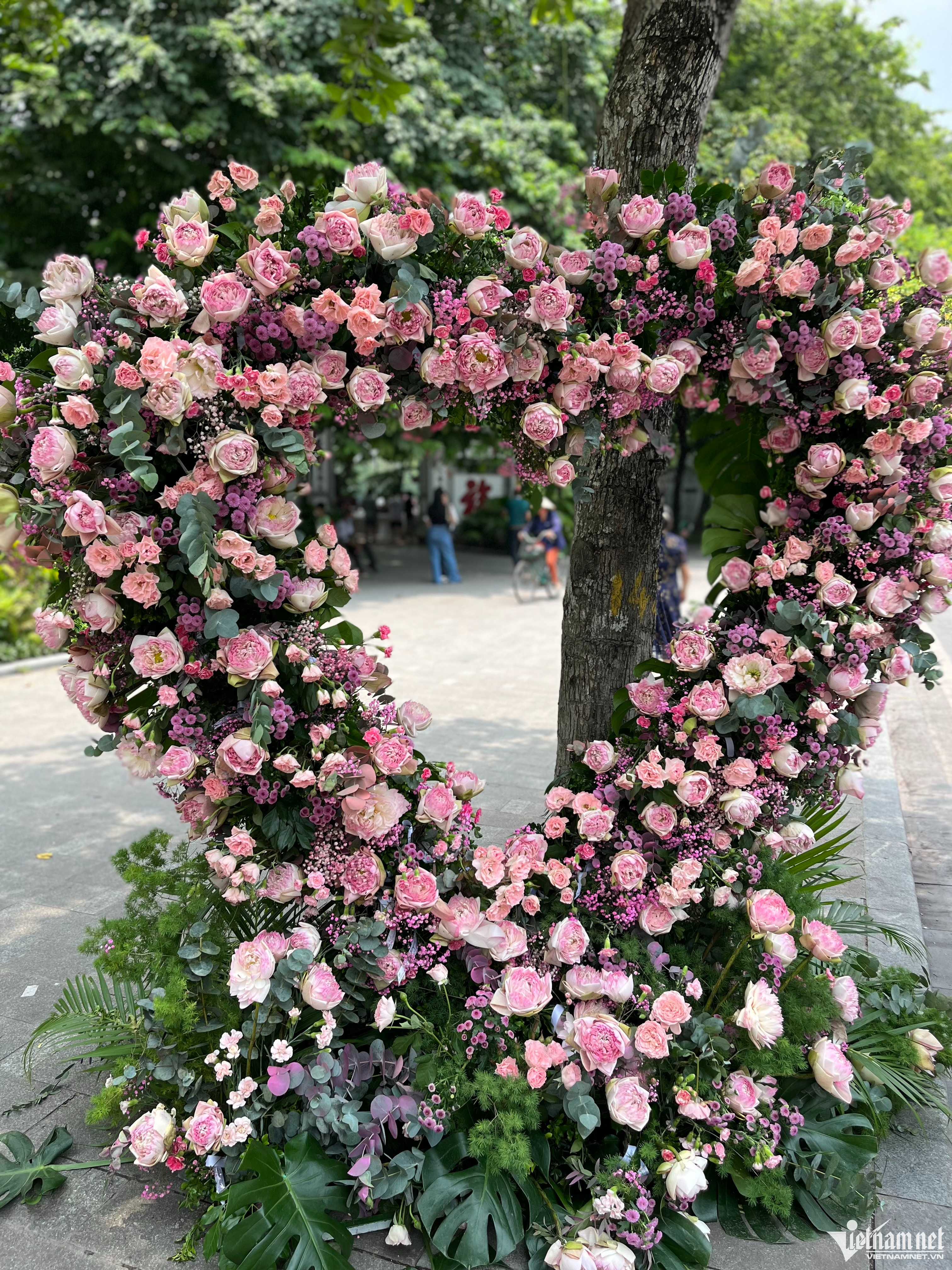 Rất đông người dân và du khách dừng chân để chụp ảnh, check-in với những trái tim hoa.