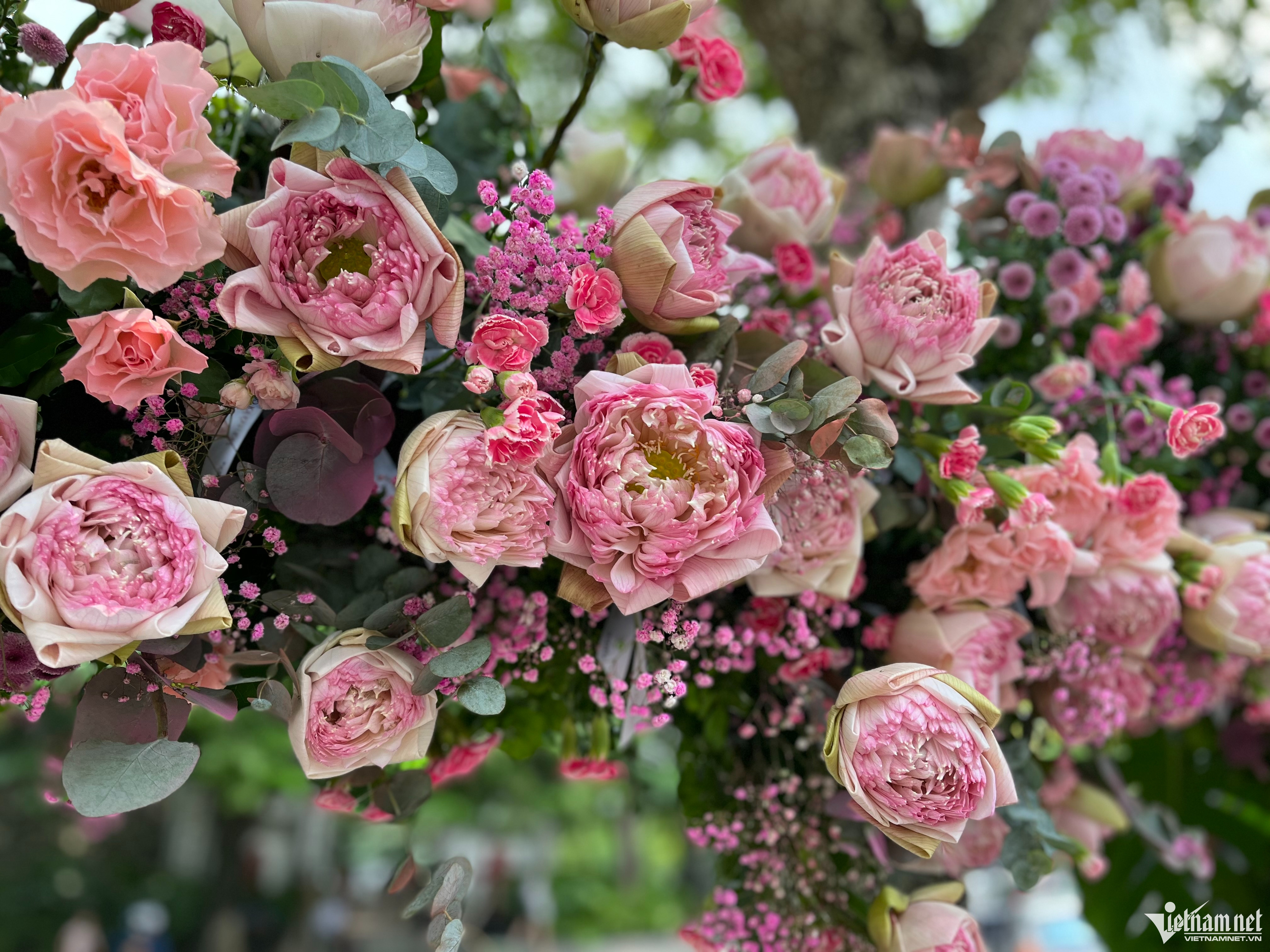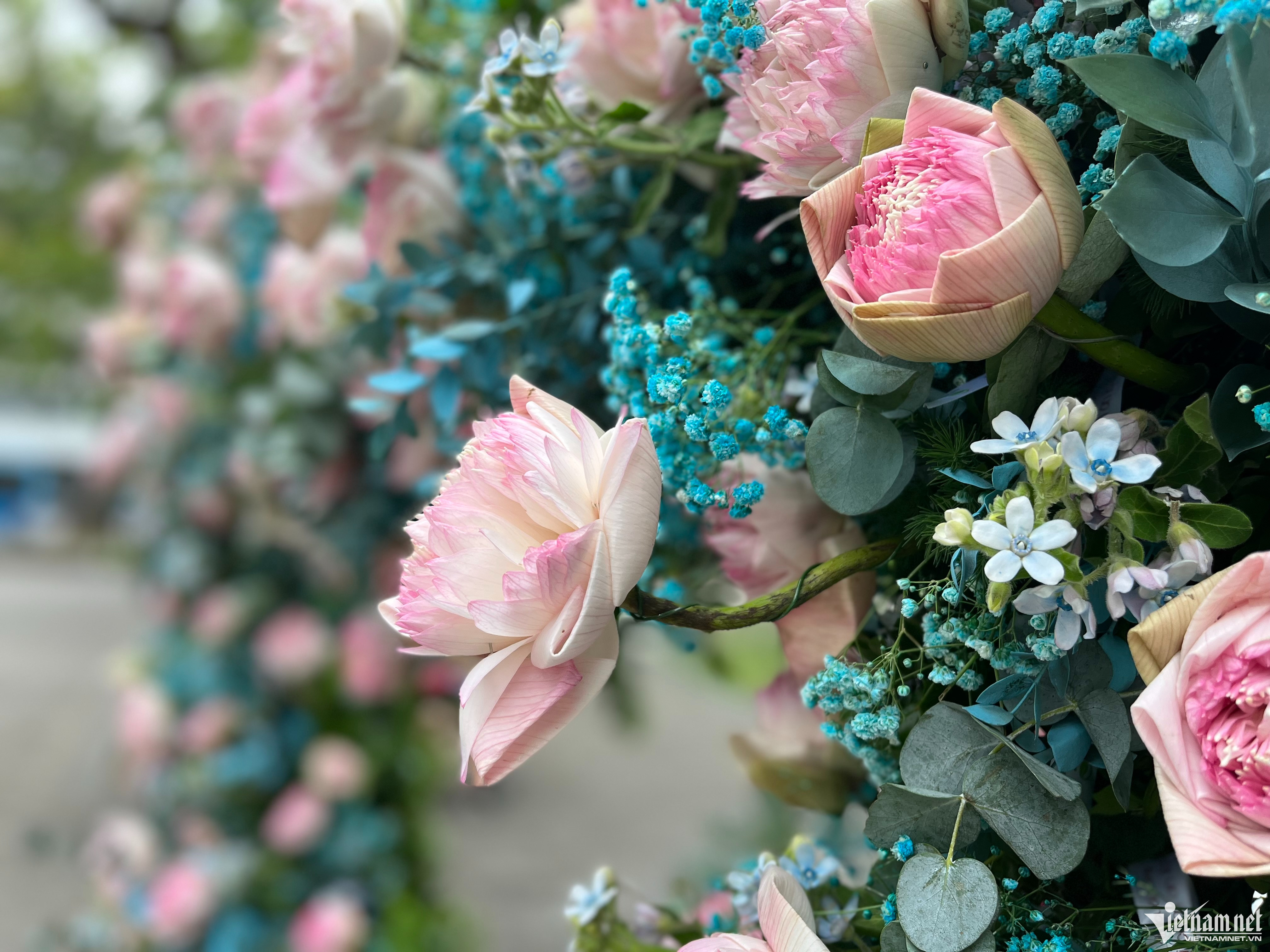 Tất cả đều được kết bằng hoa sen cùng một vài loại hoa lá phụ khác như hoa lan, hoa hồng, thủy tiên, thanh liễu, hoa cúc…