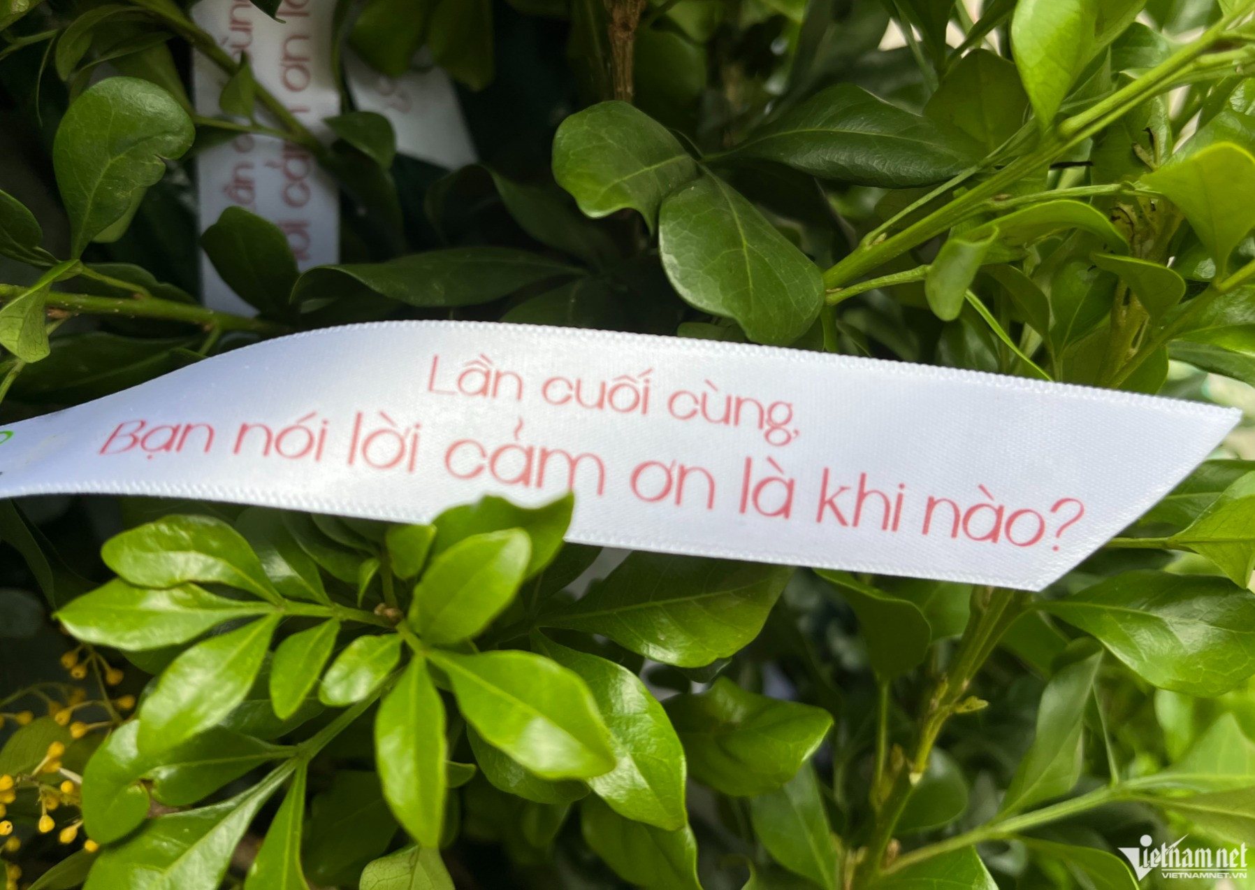 Chị Nguyễn Ngọc Nhung (Đống Đa, Hà Nội) cùng con gái đi một vòng quanh bờ hồ để chụp ảnh. Chị chưa bao giờ thấy nhiều hoa sen được kết thành tim hoa như vậy, nên dù thời tiết nắng nóng chị vẫn muốn tranh thủ ngắm nhìn khung cảnh hiếm có này.Sử dụng hoa sen để kết tim hoa không chỉ mang lại sự mới lạ mà còn có ý nghĩa rất đặc biệt. Những tim hoa được dựng đúng vào tháng vu lan báo hiếu như một lời nhắc chúng ta nhớ tới công ơn sinh thành nuôi dưỡng của cha mẹ và ghi nhớ về nguồn cội.Lời nhắn nhủ được in trên ruy-băng đã "chạm" tới trái tim mỗi người, như một lời nhắc, "đã bao lâu chúng ta chưa nói những lời yêu thương với cha mẹ?"Khi biết được ý nghĩa của những trái tim hoa, mọi người lại càng cảm thấy yêu thích và trân trọng những tác phẩm nghệ thuật này hơn.