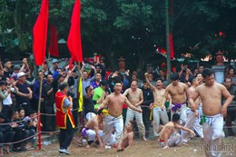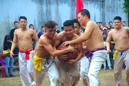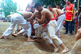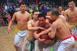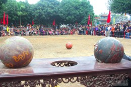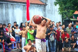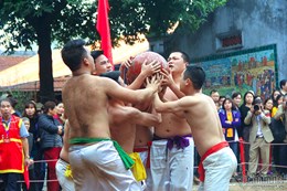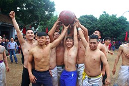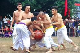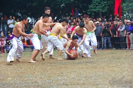 Thanh niên làng Thúy Lĩnh trổ tài với lễ hội vật cầu cổ truyền tại đình làng. Từ già đến trẻ, ai cũng có thể tham gia trận vật cầu, miễn là nam giới