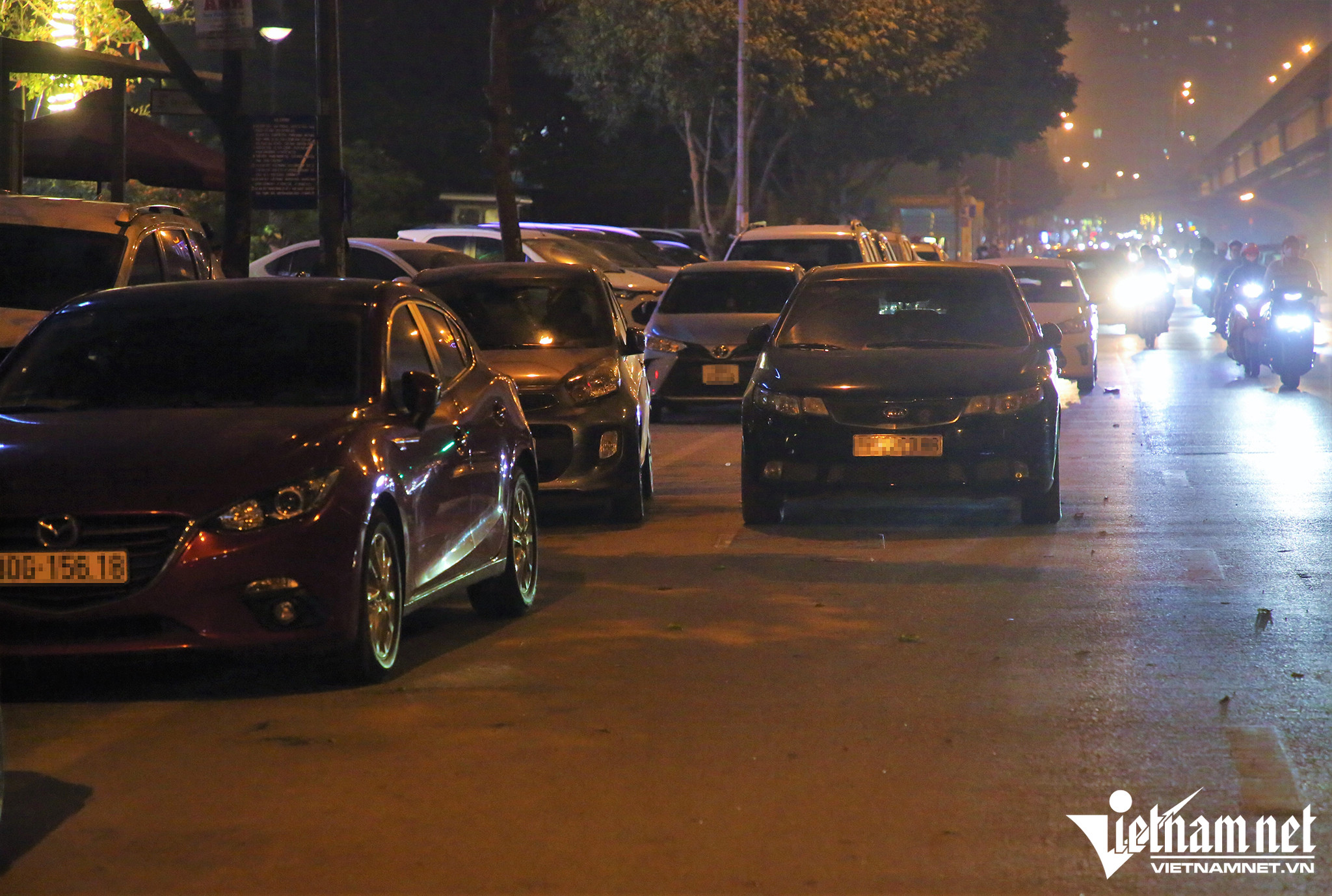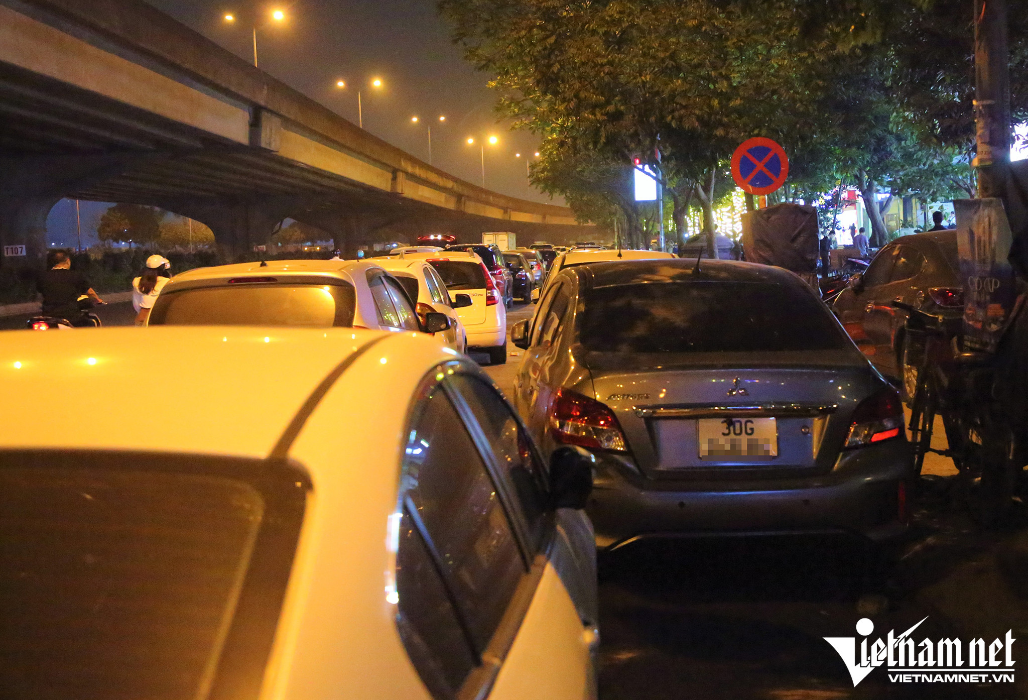 Ghi nhận của PV VietNamNet vào 22h cùng ngày, có hàng trăm ô tô đỗ dàn hàng 2, hàng 3 chiếm nửa lòng đường Nghiêm Xuân Yêm. Dãy ô tô này kéo dài hơn 500 mét từ số 1 Nghiêm Xuân Yêm đến cổng Nghĩa trang Kim Văn Kim Lũ.