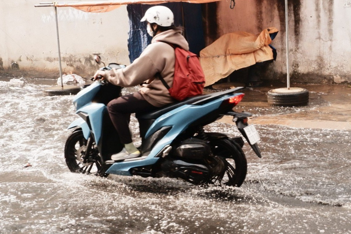 Chiều 28/12, nhiều khu vực ở TP.HCM xuất hiện trận mưa lớn trái mùa gây ngập đường, khiến người dân di chuyển vất vả.
