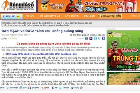 | Các quảng cáo cá độ online nước ngoài như m88, ibet888..., là những dịch vụ đang bị cấm ở Việt Nam, nhưng vẫn "chễm chệ" trên các website. |