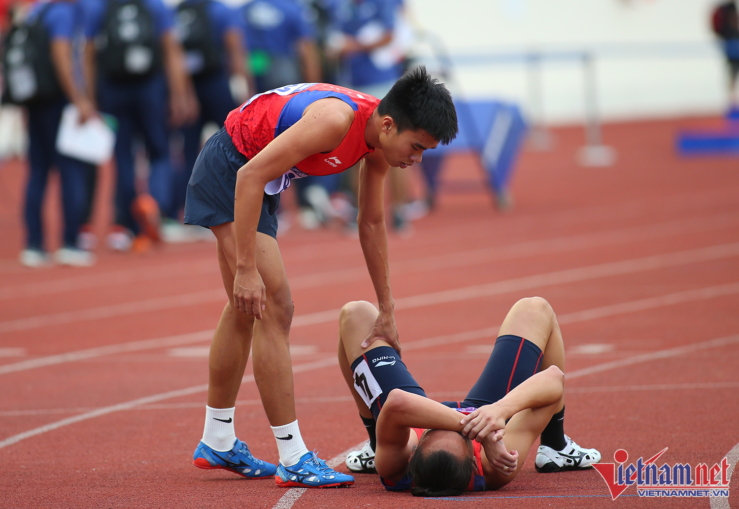 Trần Nhật Hoàng là niềm hy vọng số 1 ở nội dung 400mVĐV Việt Nam rất tự tin trước cuộc tranh tàiNhật Hoàng xuất phát tốt nhưng khi về đích đã bị hụt hơiNhật Hoàng đã rất nỗ lựcNhưng anh chỉ có thể về đích ở vị trí thứ 5VĐV Việt Nam đổ gục xuống sân thất vọngNhật Hoàng bật khócĐồng đội tới động viên anhNhật Hoàng đã rất cố gắngNhưng có vẻ anh đã gặp chấn thươngNước mắt của nhà cựu vô địchNhật Hoàng bật khóc rất đáng thươngVĐV Việt Nam không thể bảo vệ được tấm HCV ở nội dung sở trường.