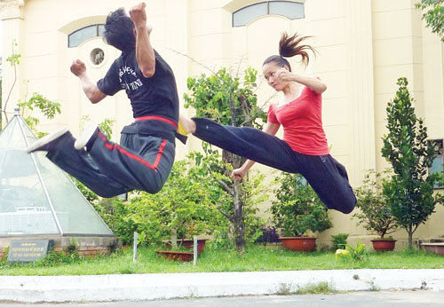 | Kim Dung trong một pha đóng thế - Ảnh: Quốc Thịnh |