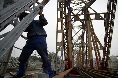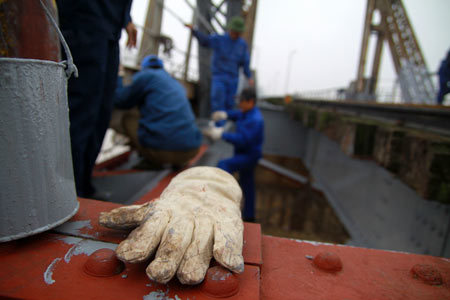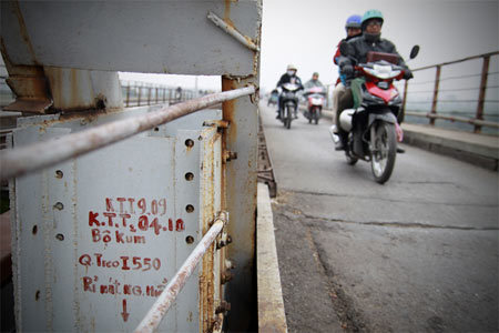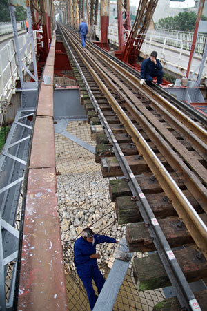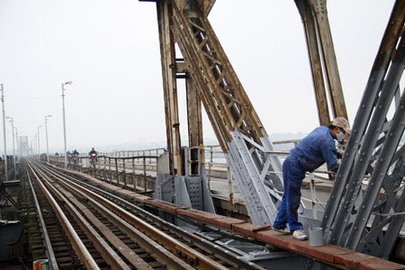 | Cây cầu trăm tuổi, chứng kiến bao thăng trầm của Hà Nội mỗi năm được sơn lại vài lần vào các dịp quan trọng như lễ, tết |